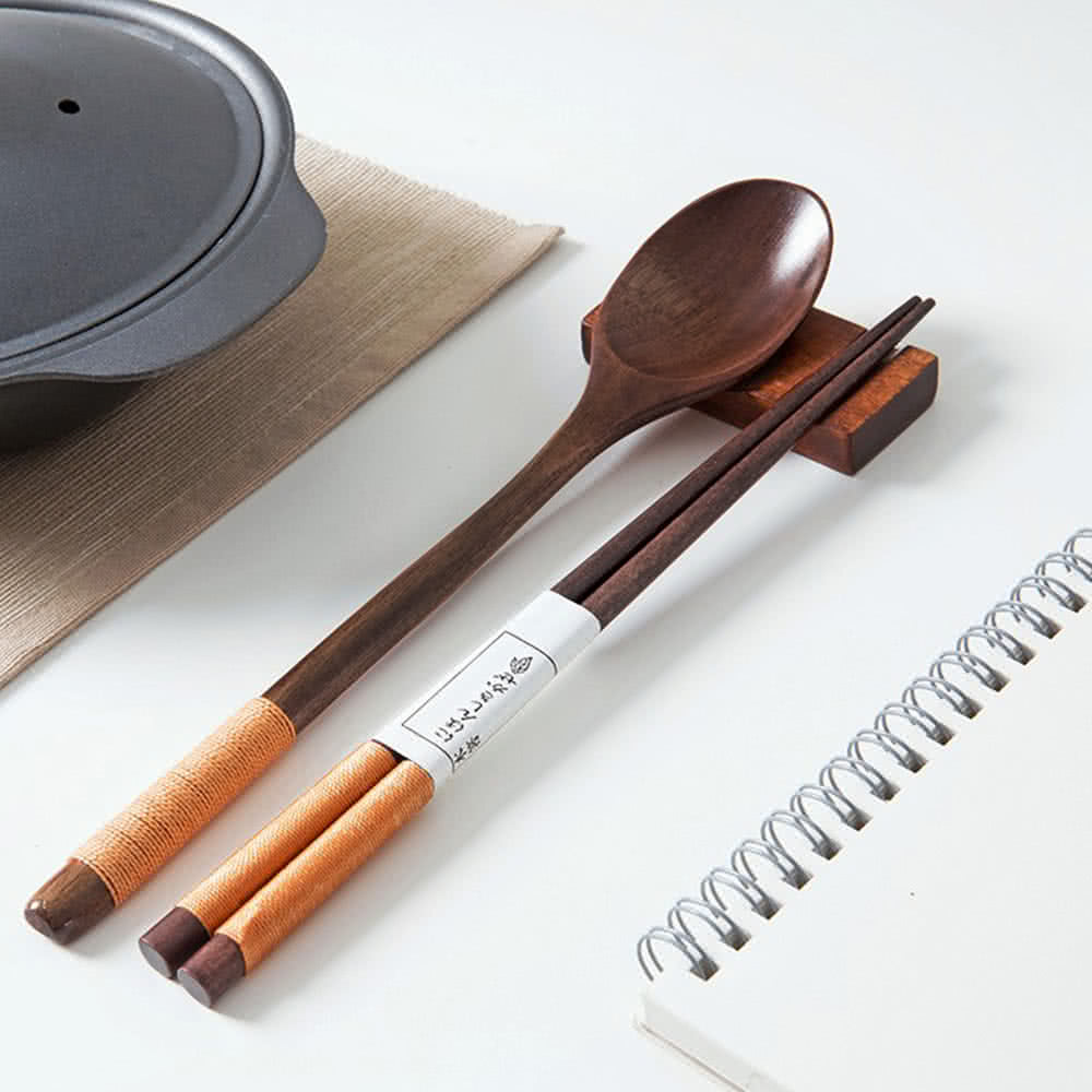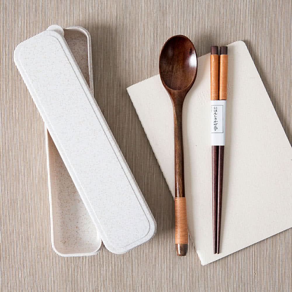 【樂邁家居】手工繞線 木質 餐具組(筷子x1 湯匙x1 小麥收納盒x1)