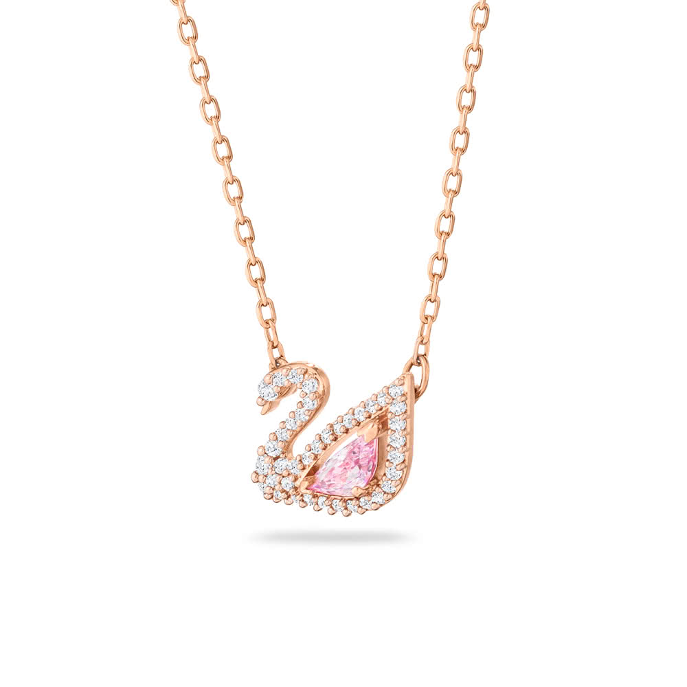 【SWAROVSKI 施華洛世奇】Swan 項鏈 天鵝 粉紅色 鍍玫瑰金色(情人節禮物)