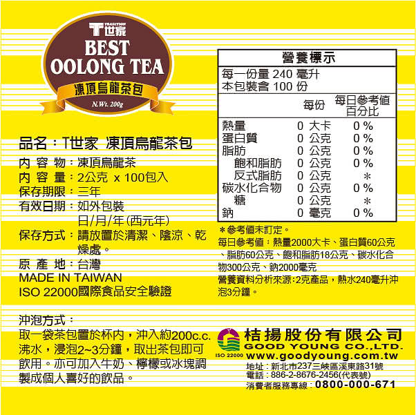 【T世家】經典凍頂烏龍茶包2gx100包x3盒(國民無釘茶包/居家/茶水間必備)