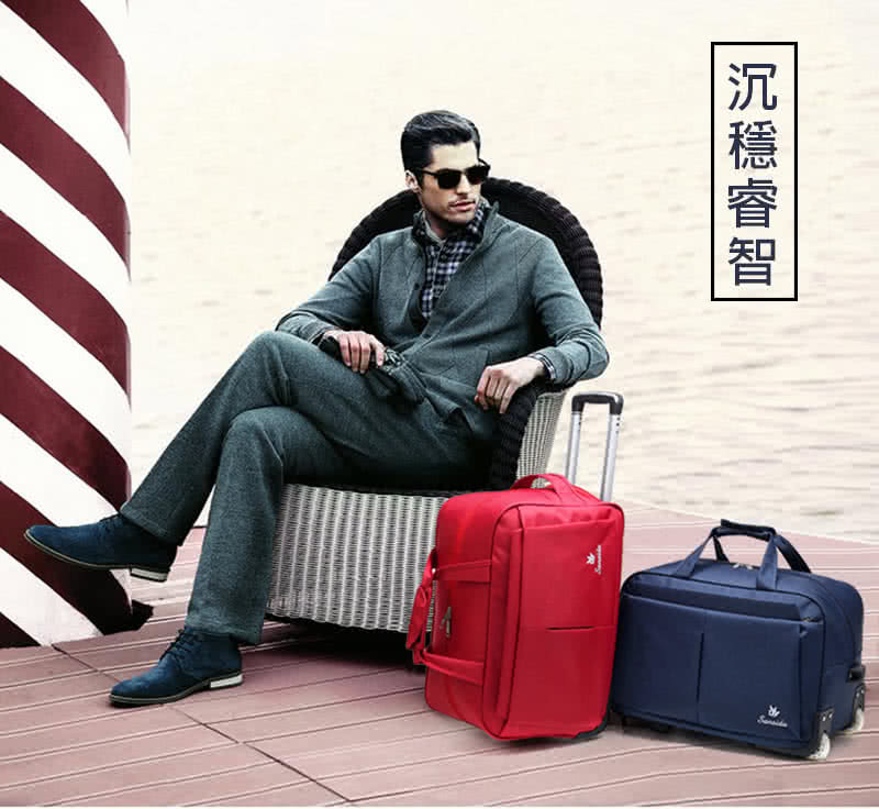 【悅生活】拉桿包 拉桿袋 登機袋 24吋登機拉桿旅行袋 經典細格紋 黑色(GoTrip 微旅行)