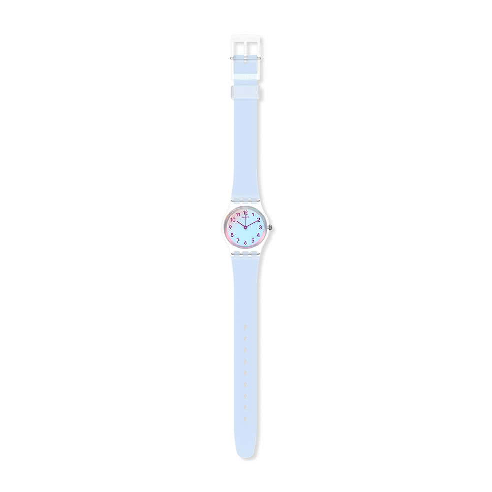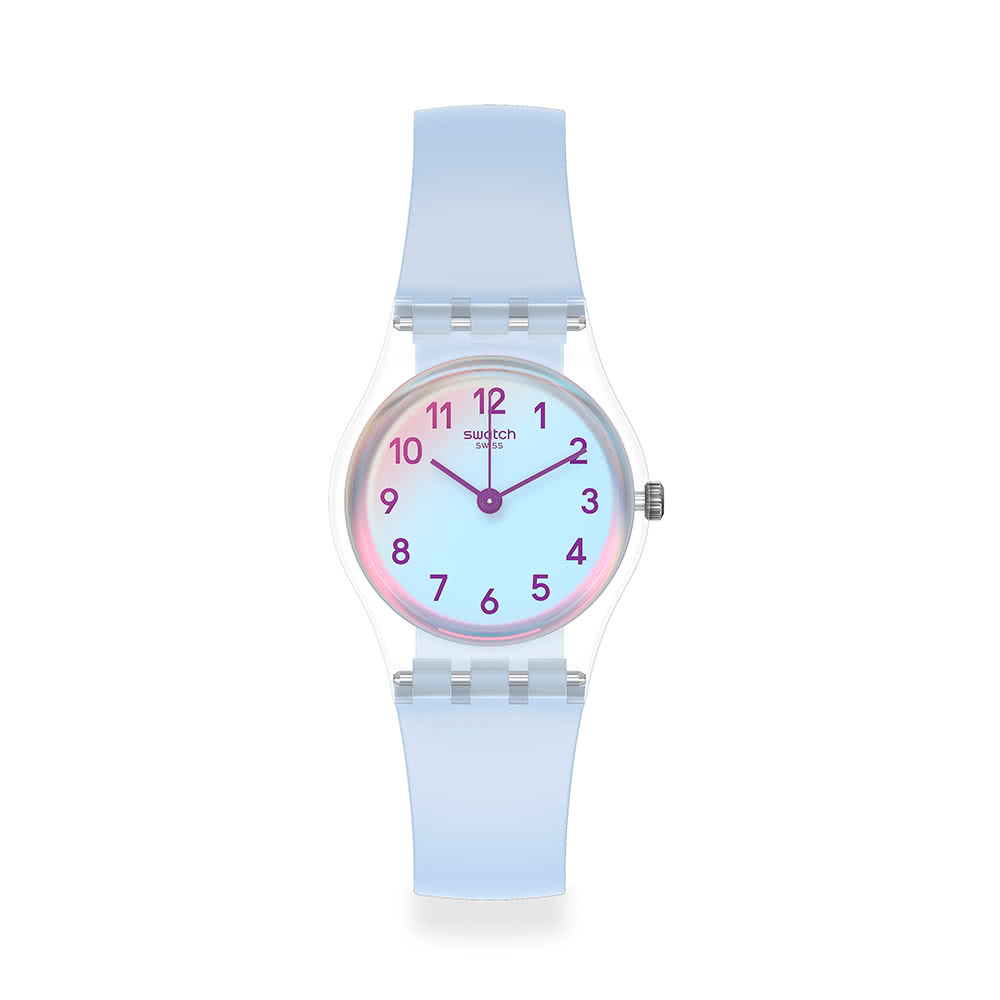 CASUAL BLUE (LK396) 搭載絢麗的太陽光譜錶鏡,巧妙玩轉沉靜的藍色透明錶帶,呈現優雅風格。