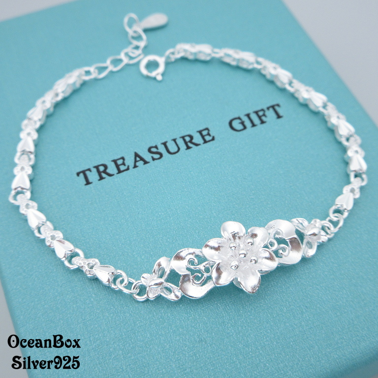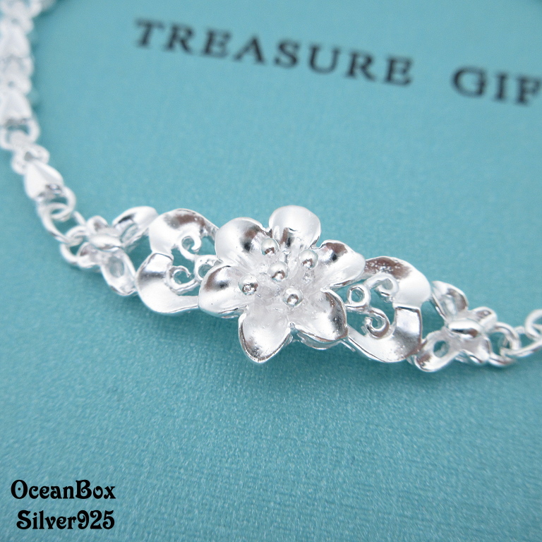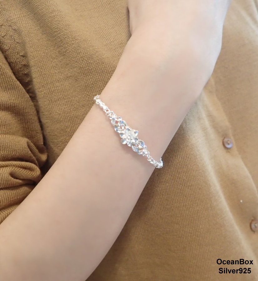 【海洋盒子】銀白優雅花朵設計S999純銀手鍊(附贈禮盒)
