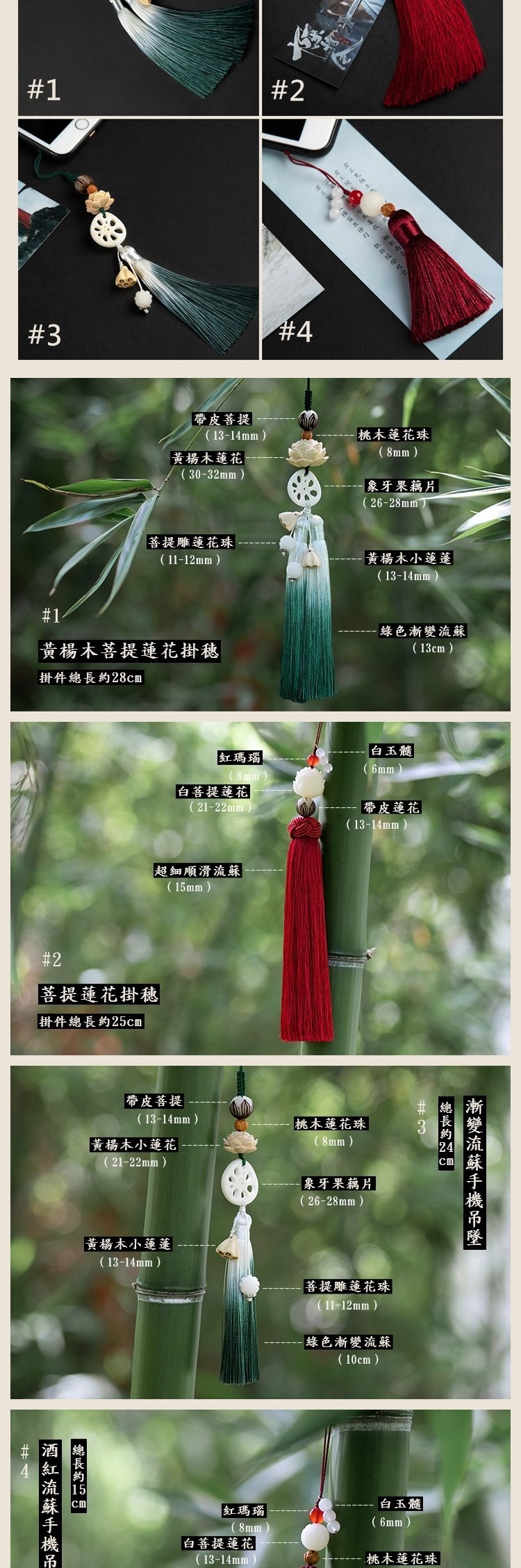 【米蘭精品】現貨+預購 手機掛飾鑰匙扣(菩提黃楊木蓮花流蘇包包配飾母親節情人節生日聖誕節禮物4款73xd20)