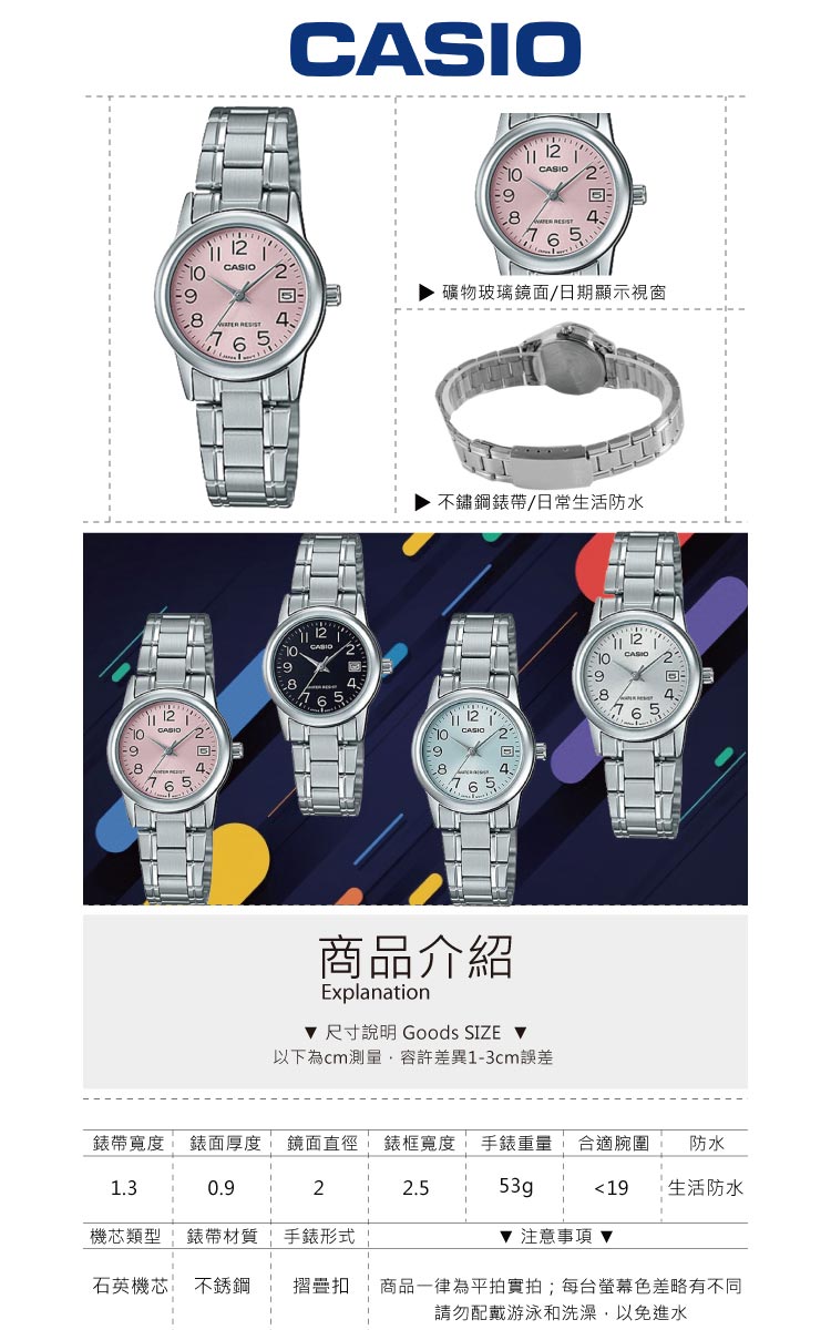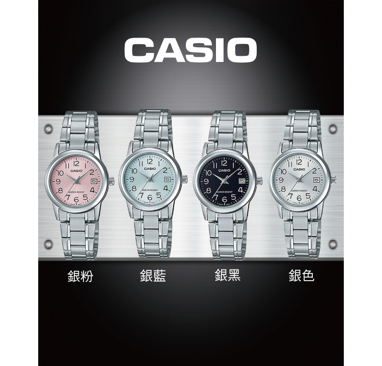 【CASIO 卡西歐】LTP-V002D 簡約數字小錶面日期顯示鋼帶錶