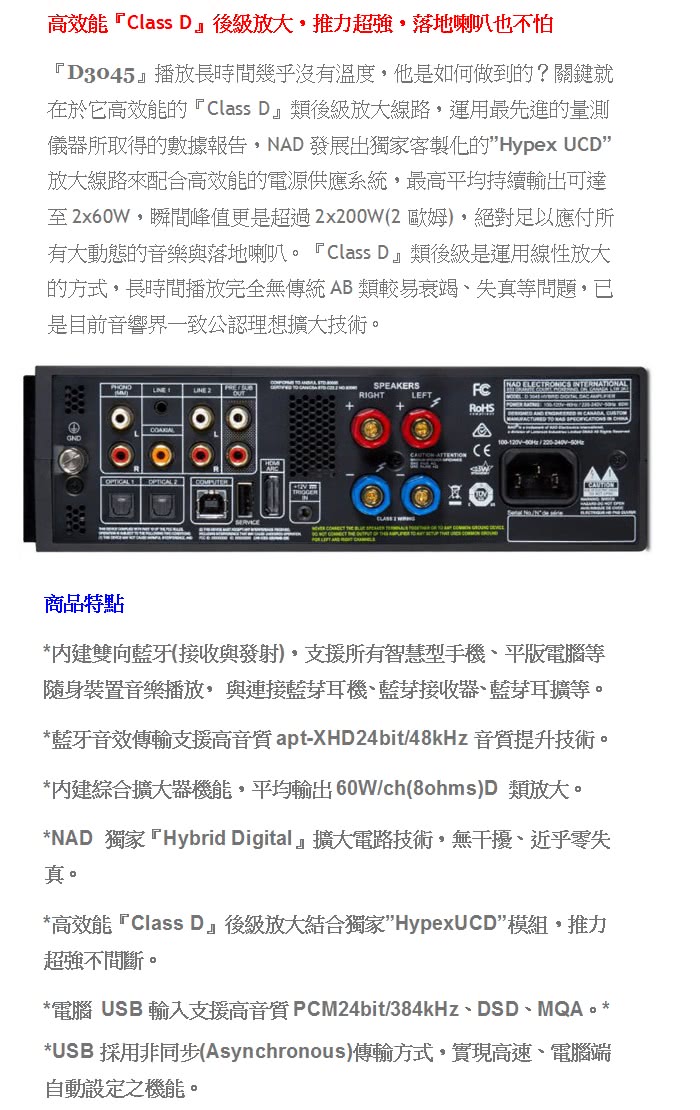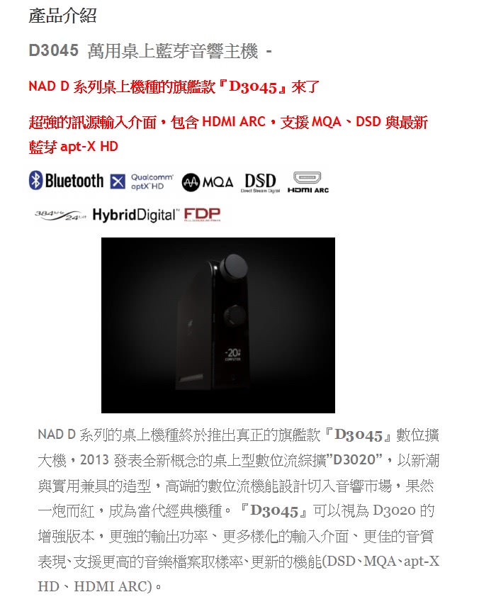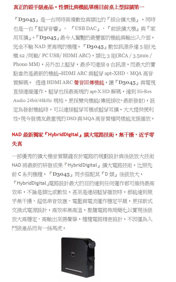 【NAD】萬用桌上藍牙音響主機(D3045)