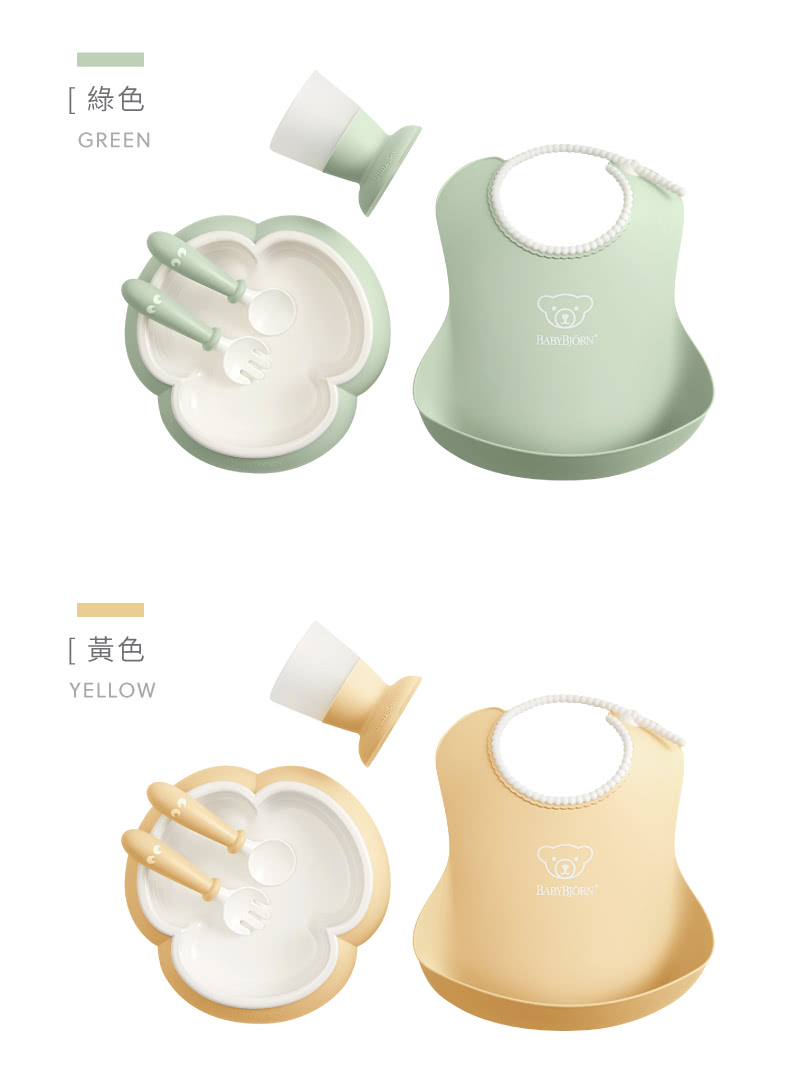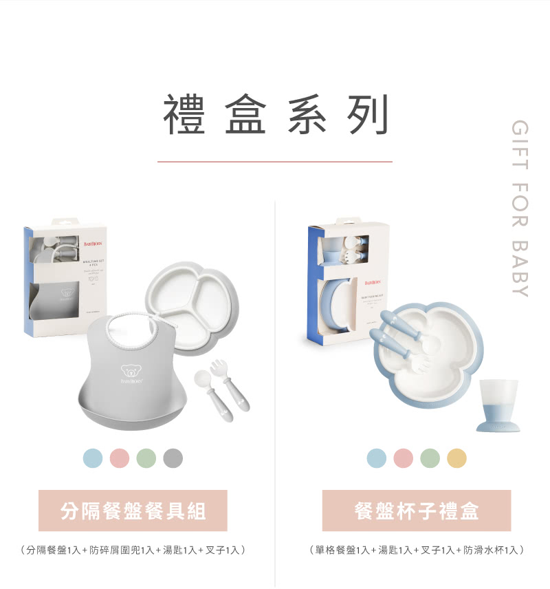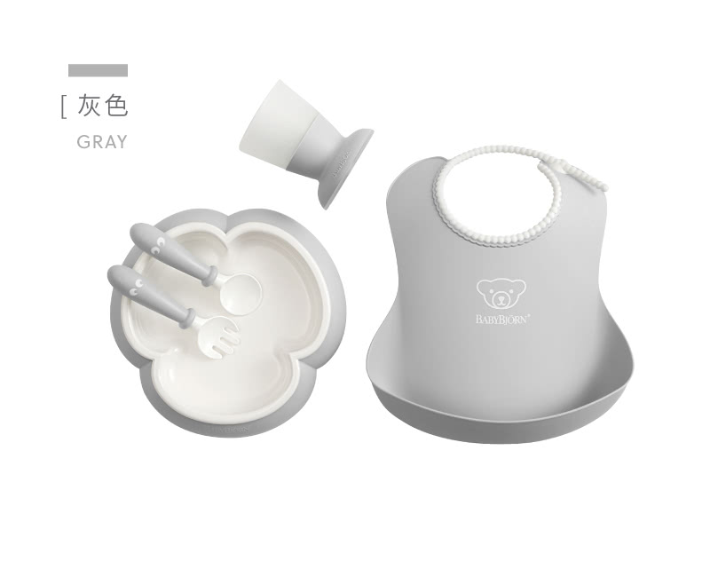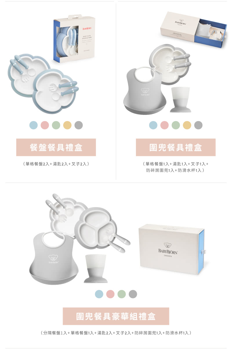 【BABYBJORN 奇哥】圍兜餐具禮盒/兒童餐盤/兒童餐具/學習餐具(5色選擇)