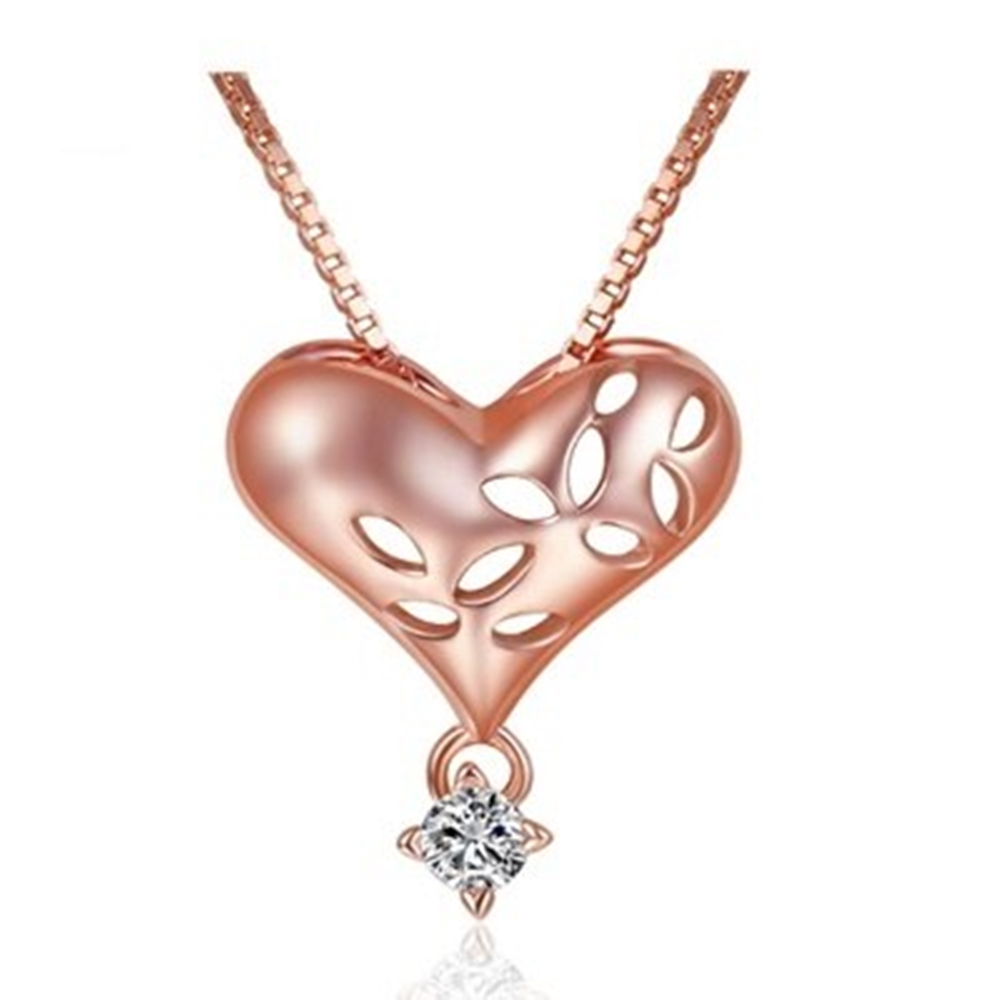【米蘭精品】現貨+預購 玫瑰金純銀項鍊鑲鑽吊墜(韓版愛心獨特大方母親節情人節生日聖誕節禮物女飾品73fy65)