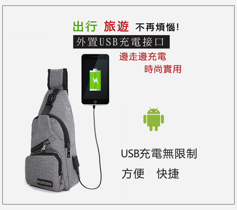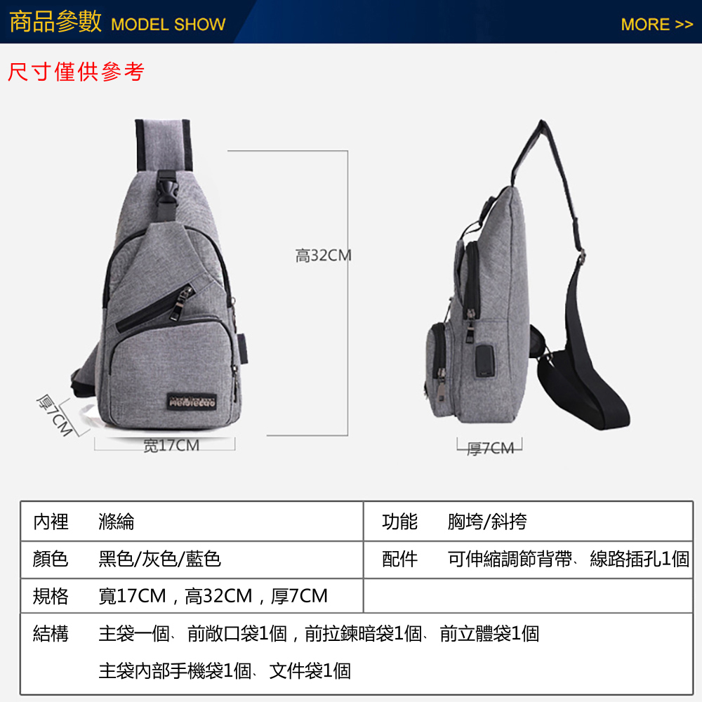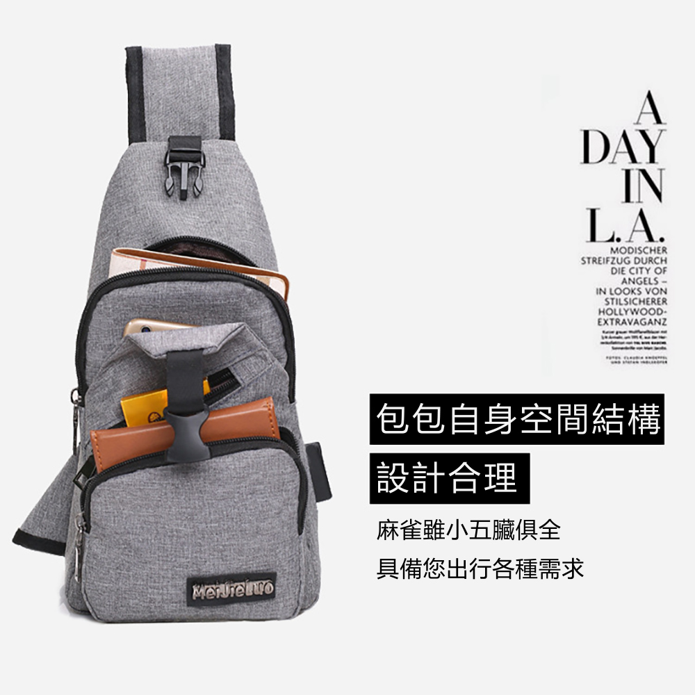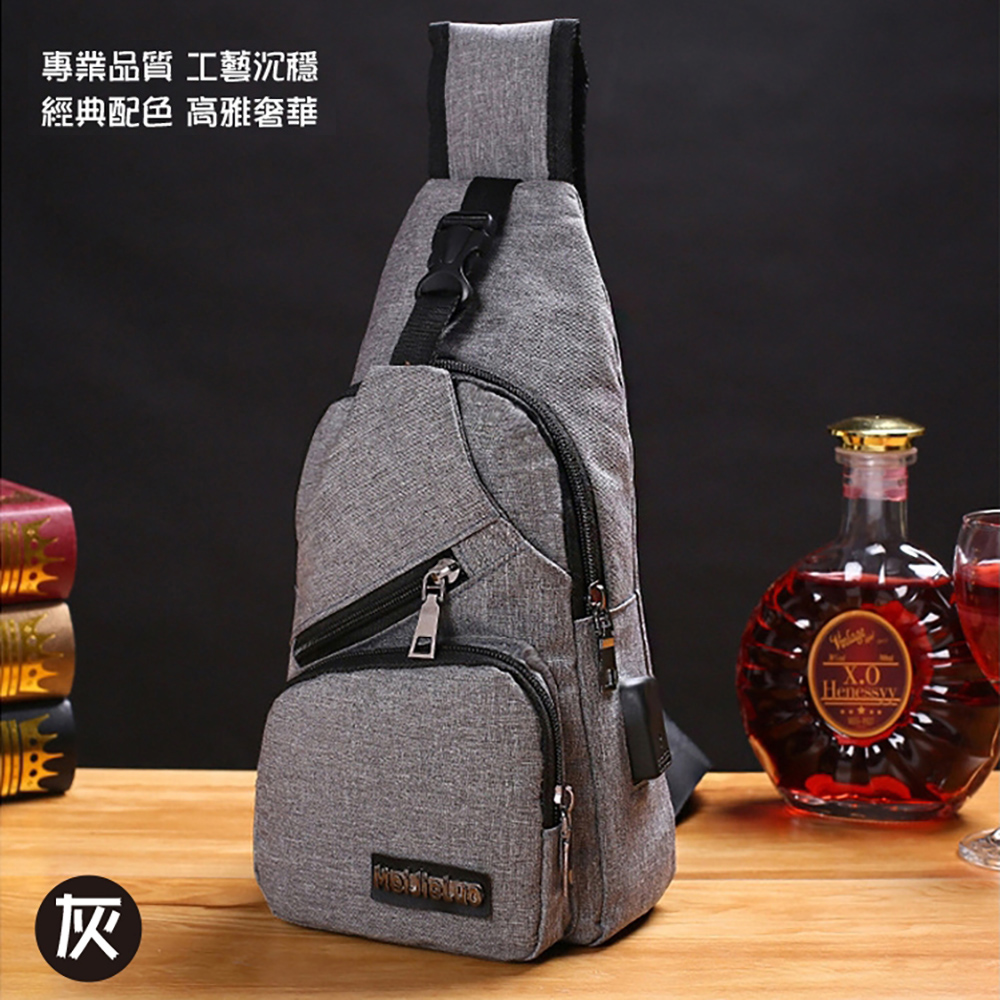 【豪麥源】雙11 情人節禮物 USB胸包(1111附USB線 韓系休閒男士側背包 男用斜背包 旅行充電接口單肩包 防