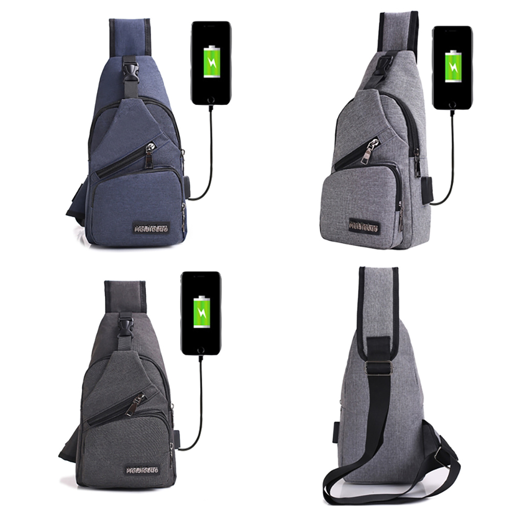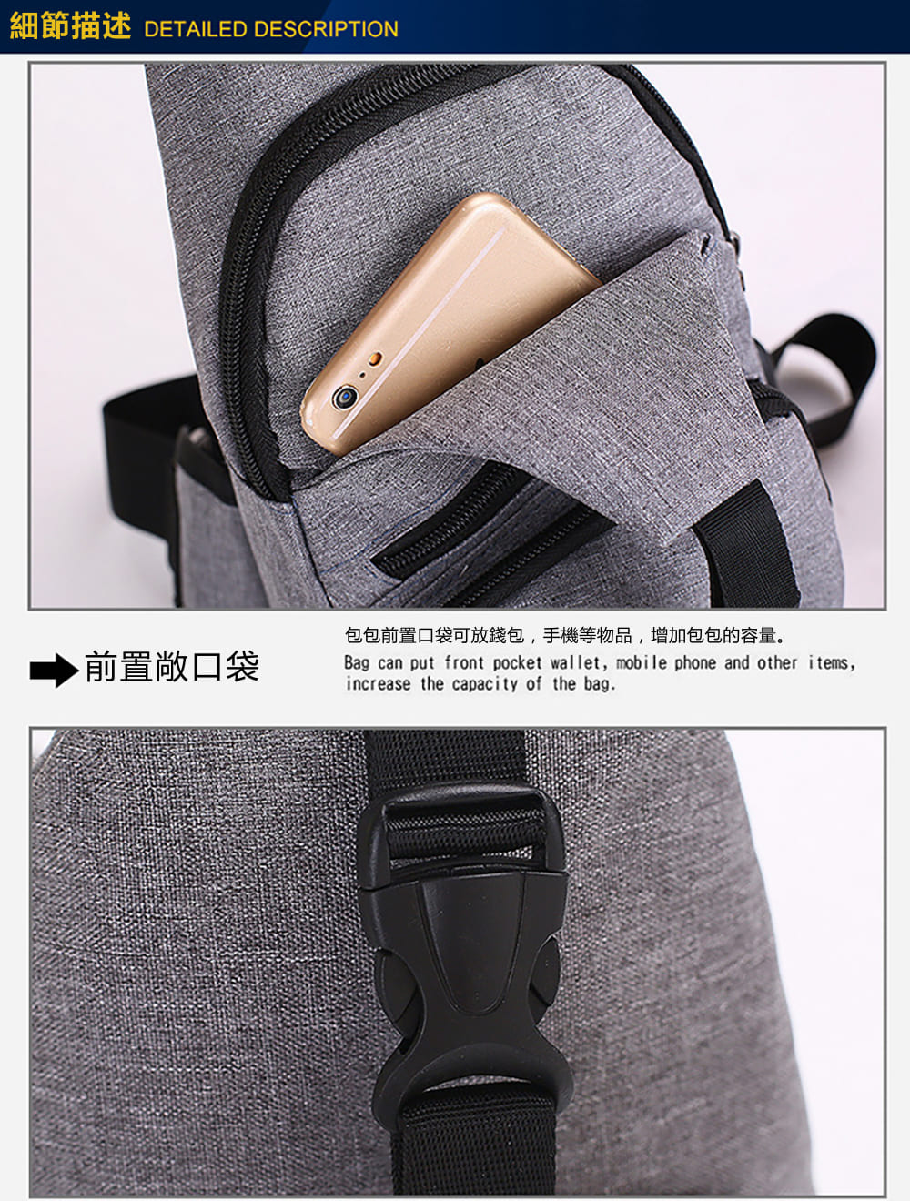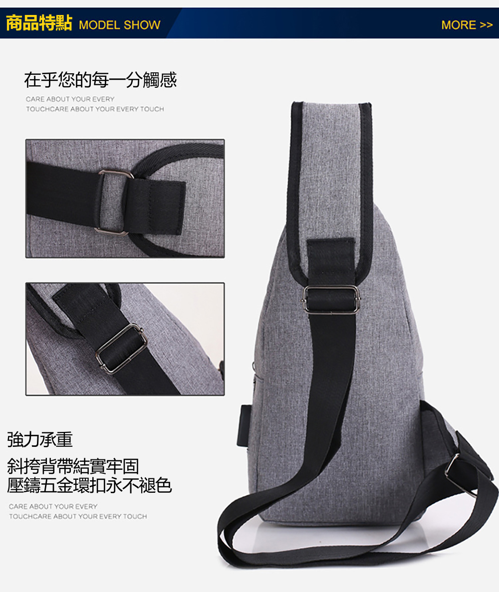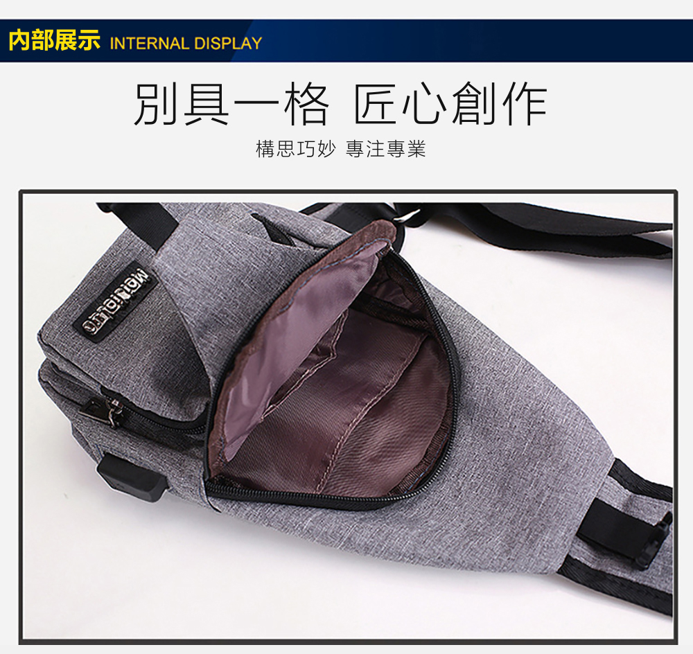 【豪麥源】雙11 情人節禮物 USB胸包(1111附USB線 韓系休閒男士側背包 男用斜背包 旅行充電接口單肩包 防