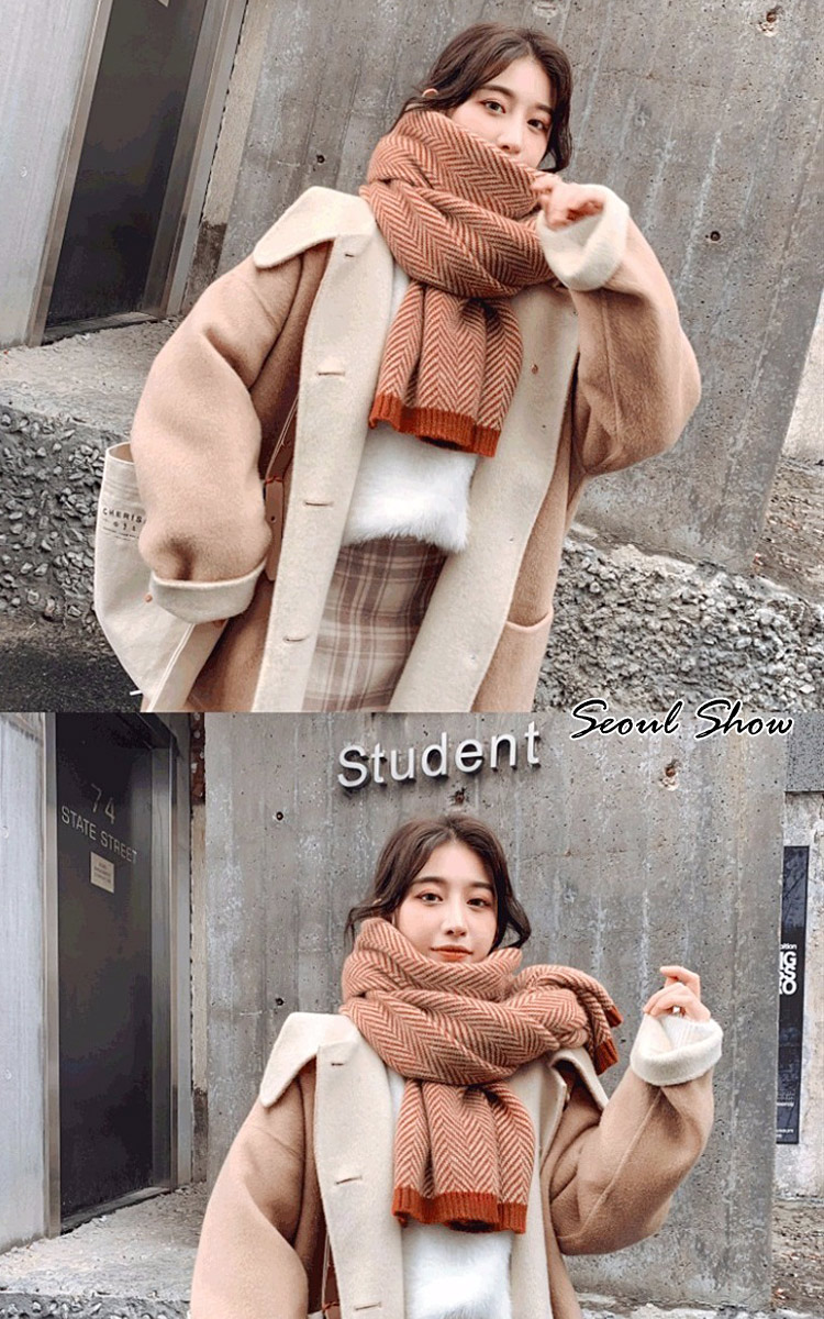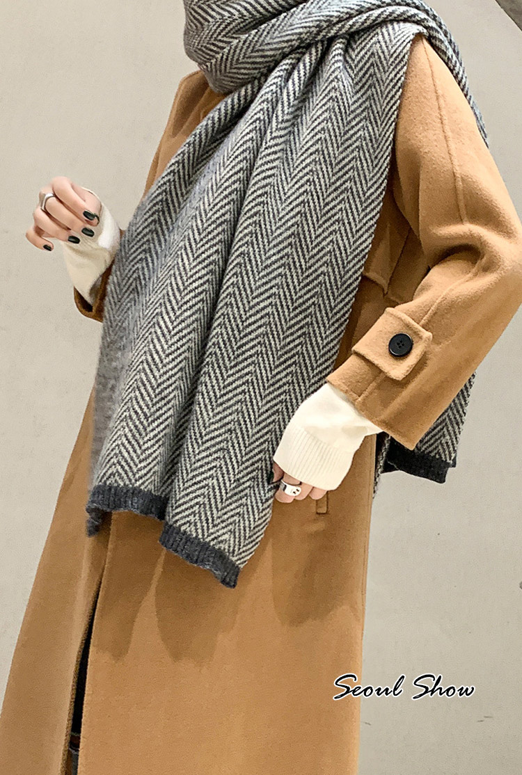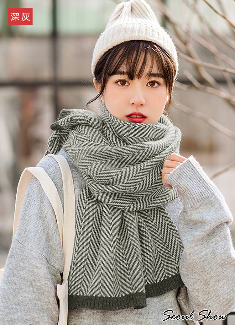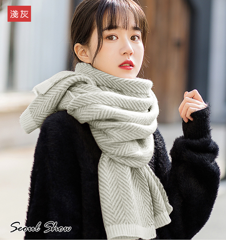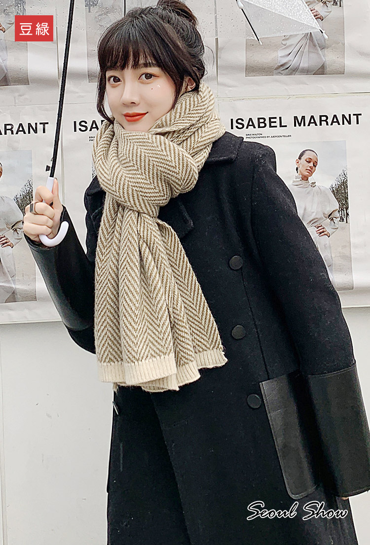 Seoul Show首爾秀 人字格紋針織加厚仿羊絨圍巾披肩