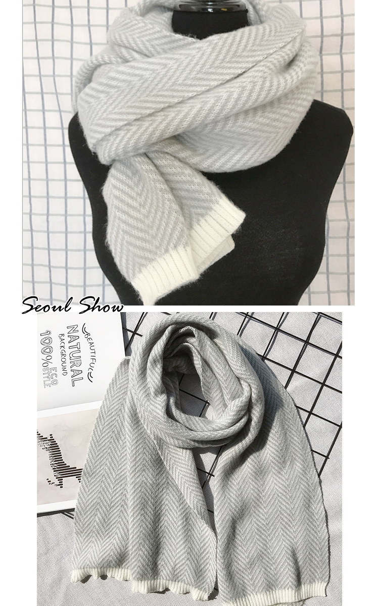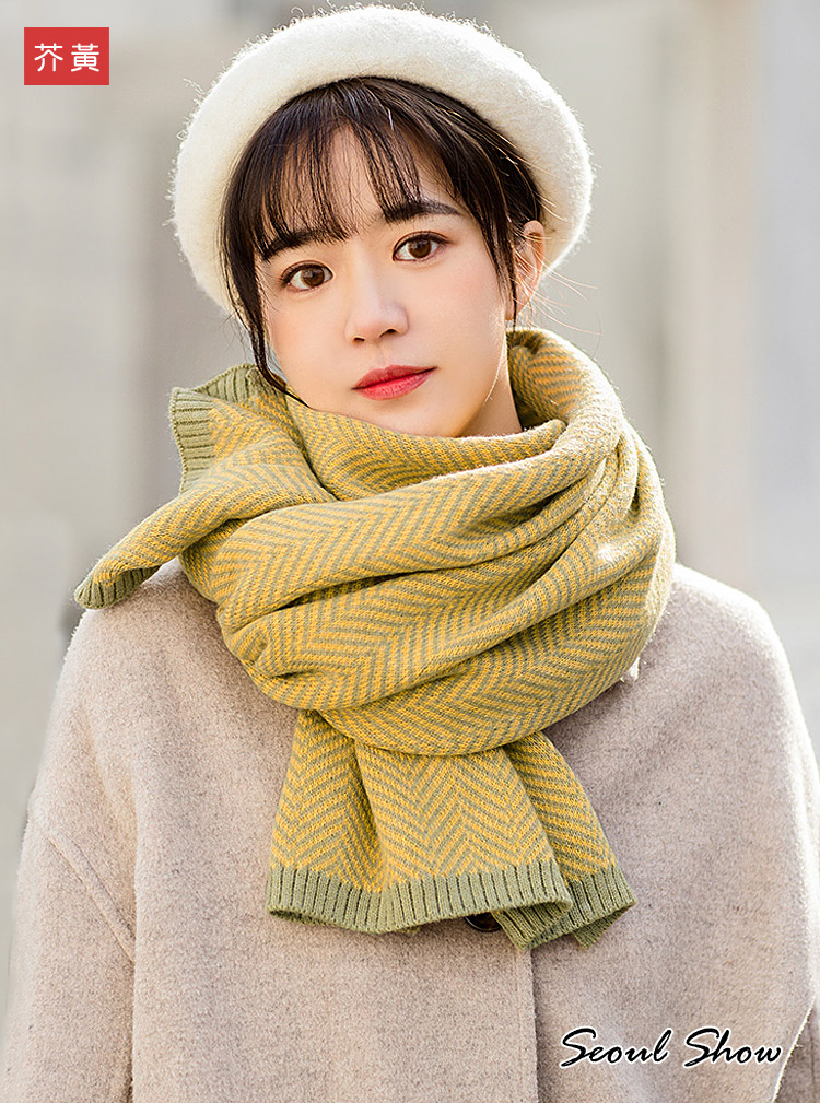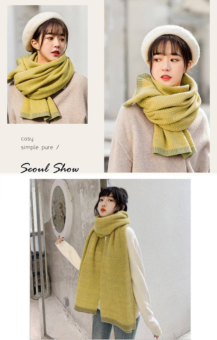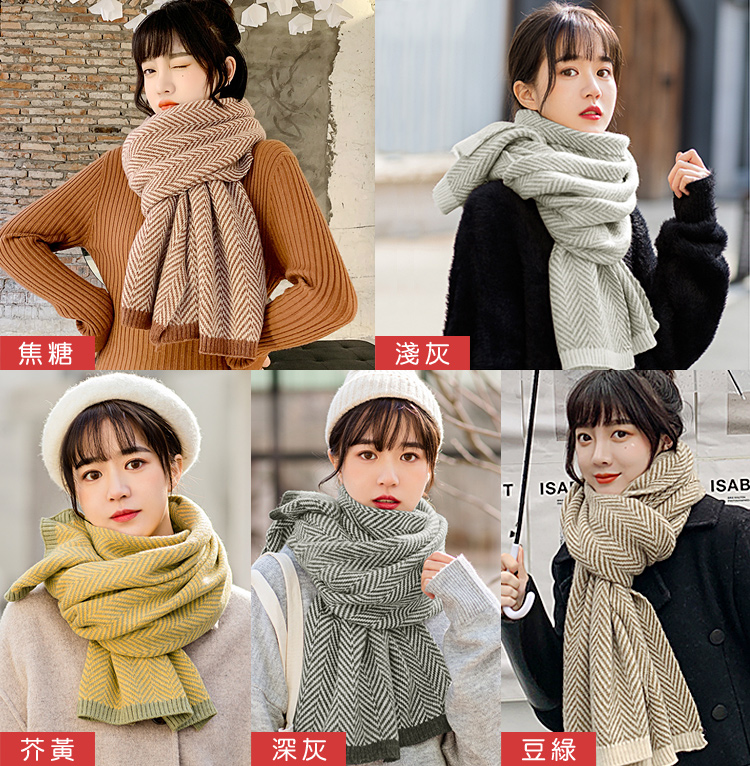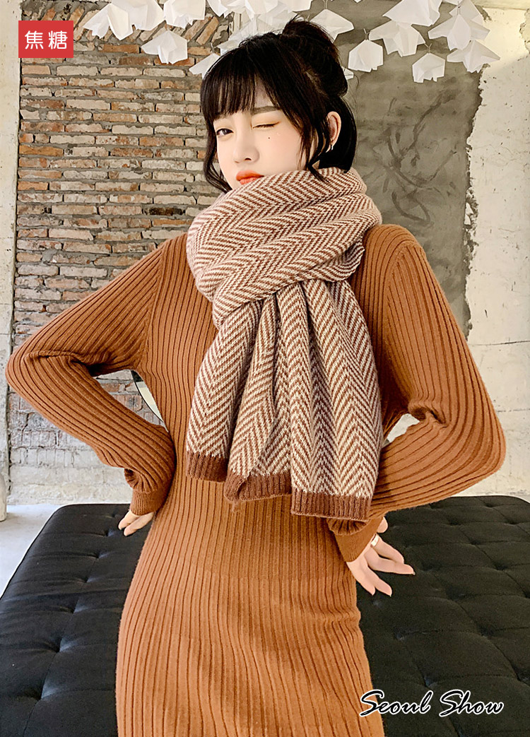 Seoul Show首爾秀 人字格紋針織加厚仿羊絨圍巾披肩