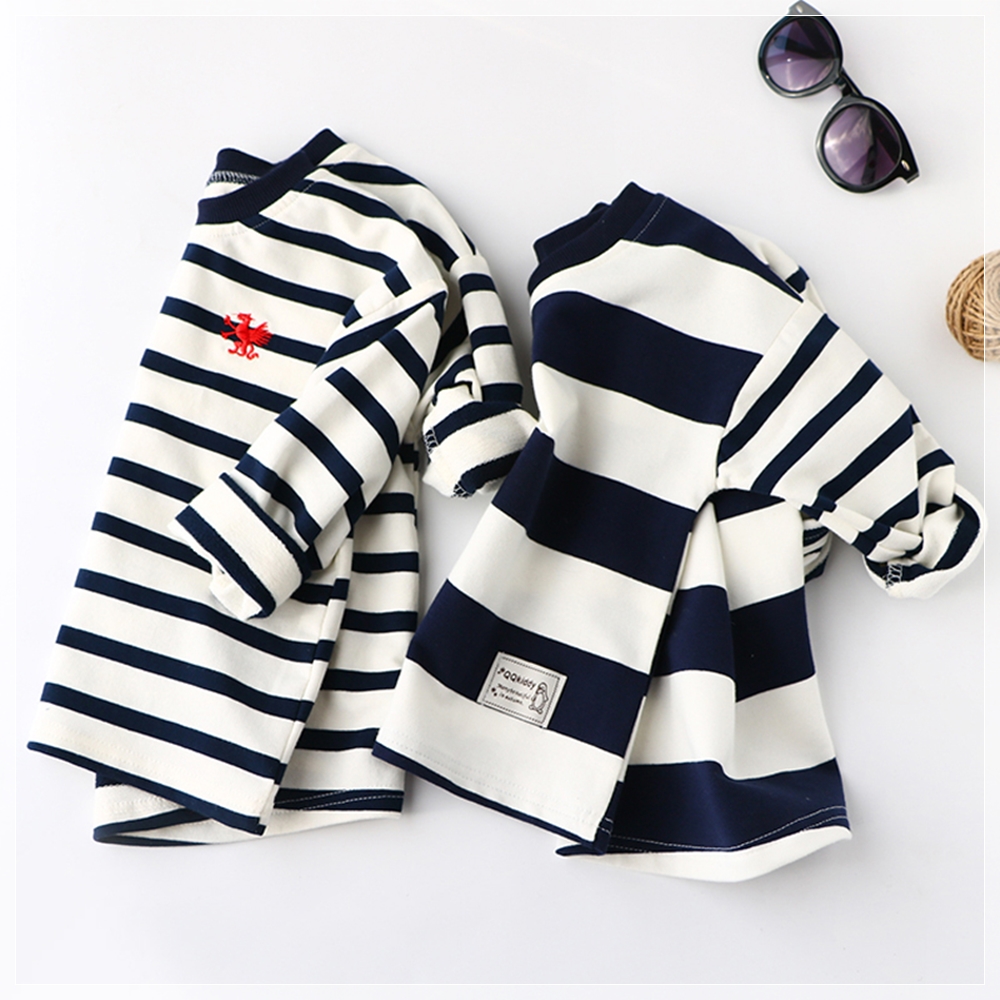【橘魔法】深藍條紋毛圈棉長袖上衣(衛衣 薄長袖 中性款 男童 女童 小童 中童 兒童 童裝)