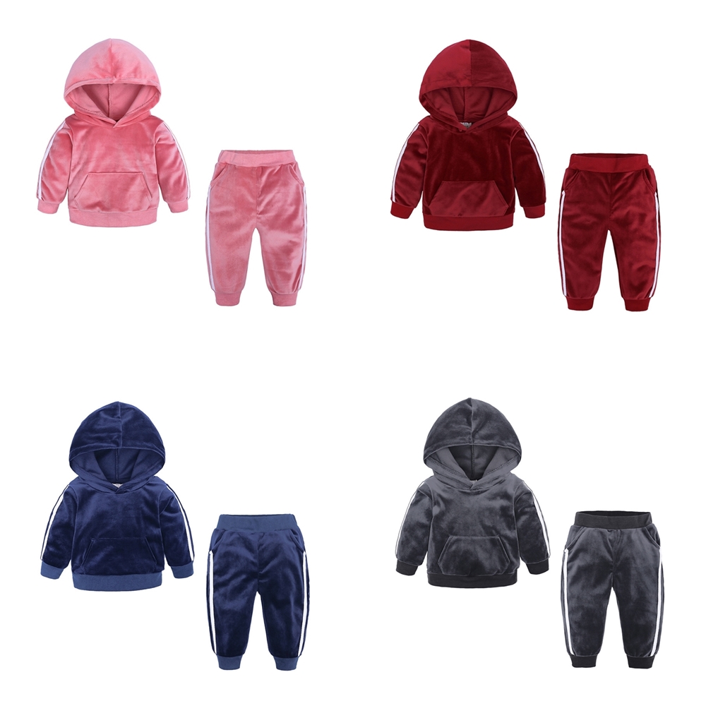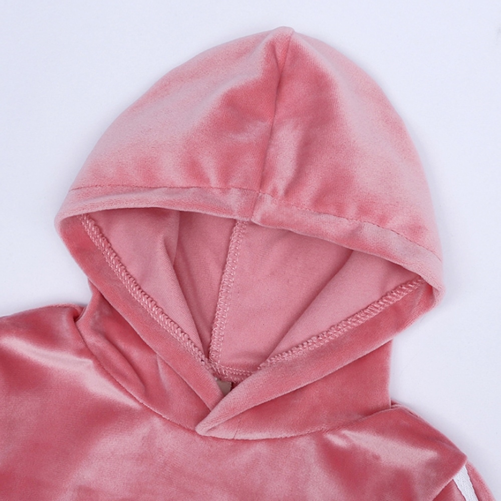 【橘魔法】運動風金絲絨連帽長袖上衣+長褲(帽T 套裝 中性款 中童 男童 女童 童裝 保暖)