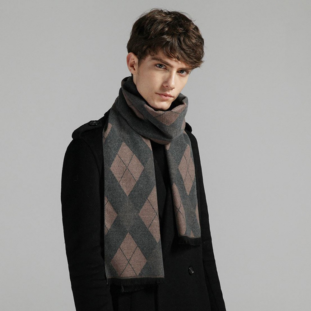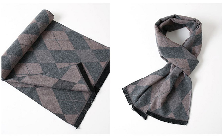 【Jun Jun】秋冬細緻保暖圍巾(灰棕菱形格#8)