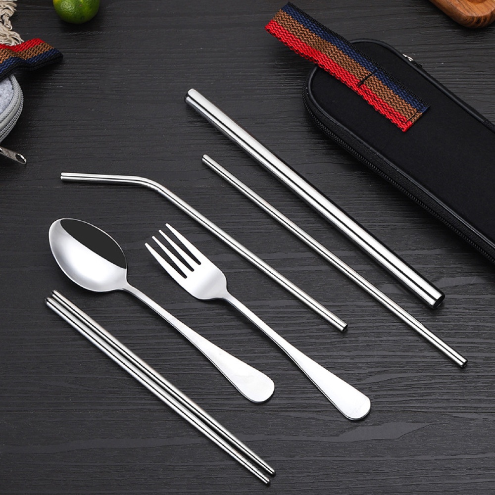 【環保餐具】410不鏽鋼餐具8入套組-附收納袋(廚房 湯匙 筷子 叉子 吸管 湯匙 筷子 叉子 吸管 攜帶式)