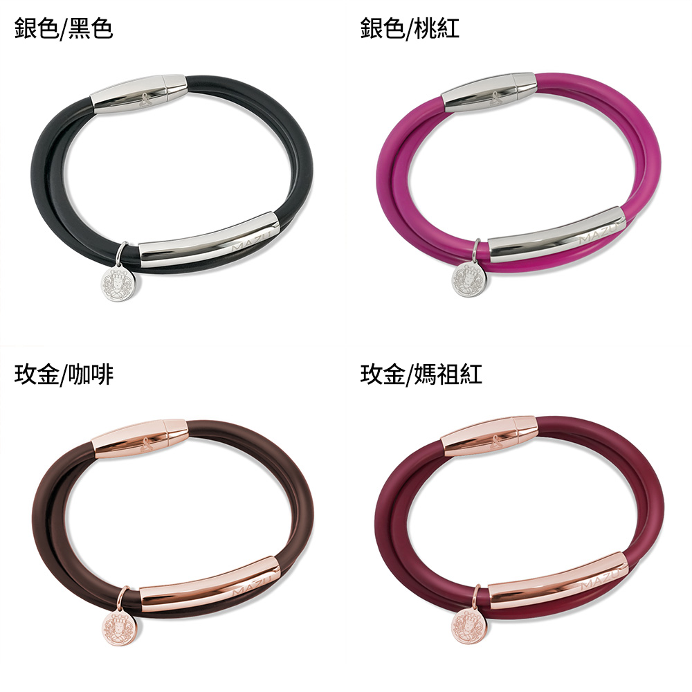 在設計上,白鋼款搭配黑色與桃紅色系,展現沉穩與活力兼具的氣質;玫金款則提供咖啡與紅色選擇,呈現溫潤與明亮交錯的風格,讓每一位配戴者都能找到專屬於自己的能量平衡。