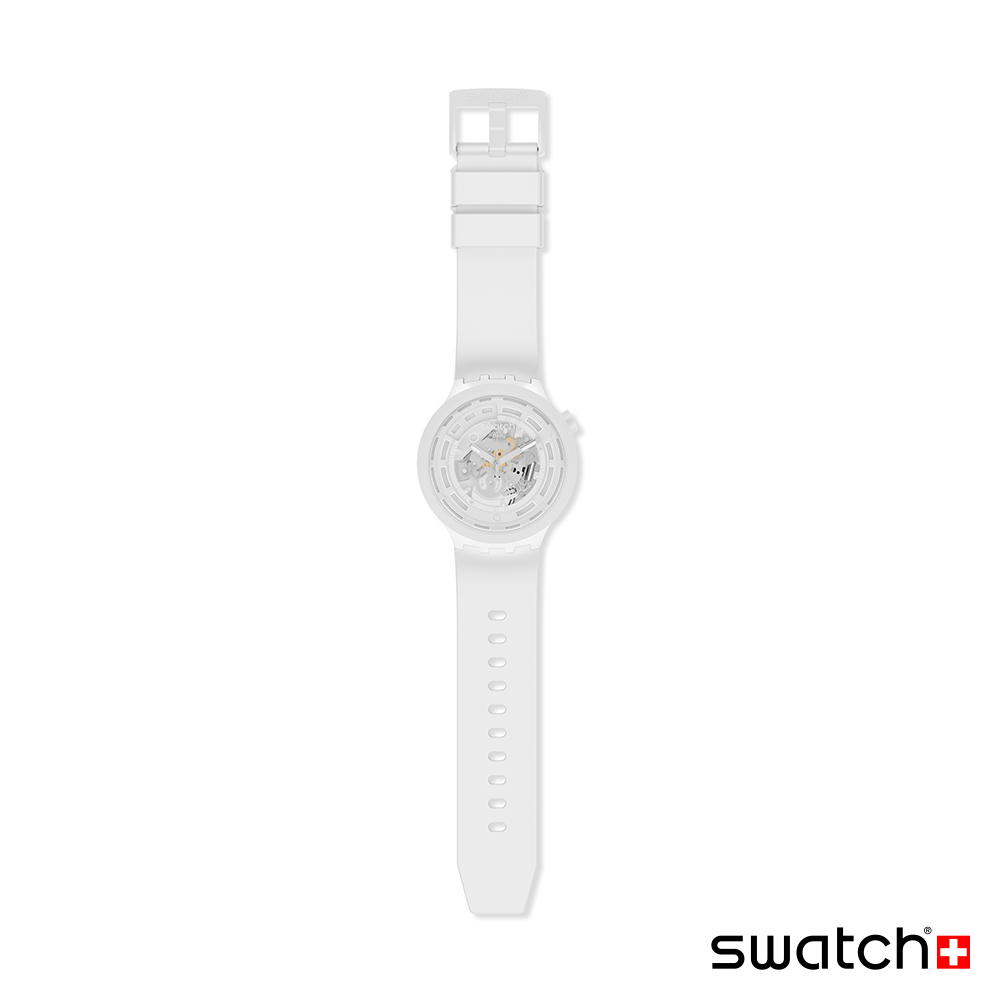 【SWATCH】C-WHITE 大錶面手錶/男錶/女錶/瑞士製造 SB03W100(47mm)