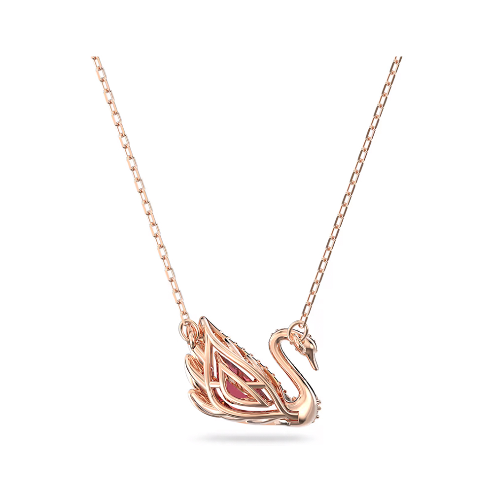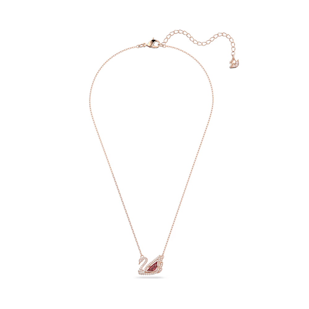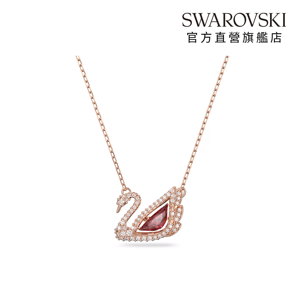 【SWAROVSKI 施華洛世奇】Swan 項鏈 天鵝 紅色 鍍玫瑰金色調