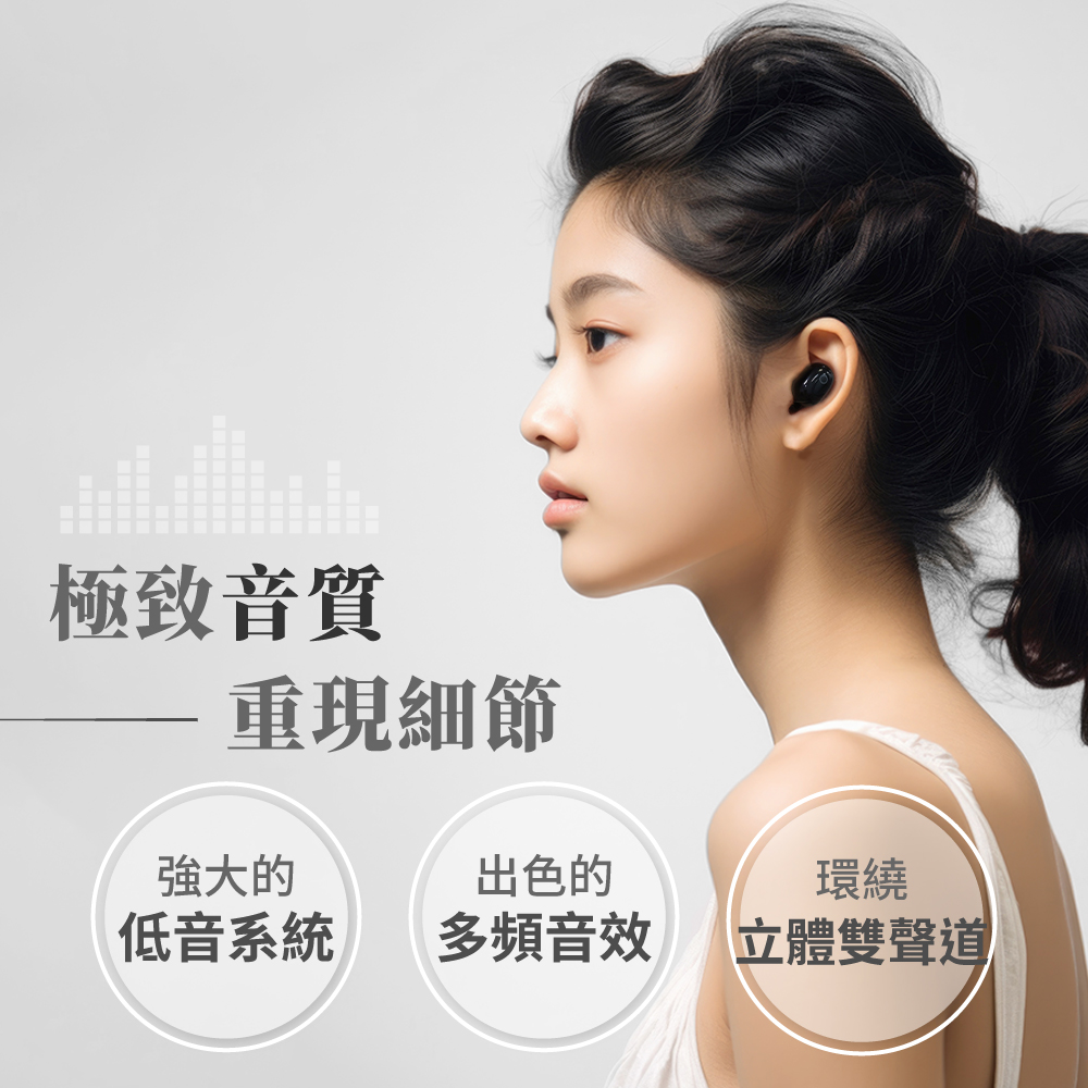 2.藍芽6.0智慧連結: 取出耳機就開機連線,放入充電倉就關機,穩定的連結傳輸,讓你沉浸在音樂饗宴