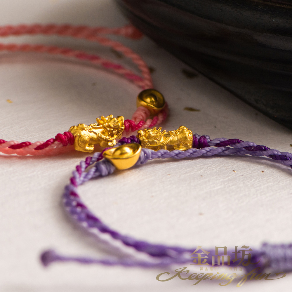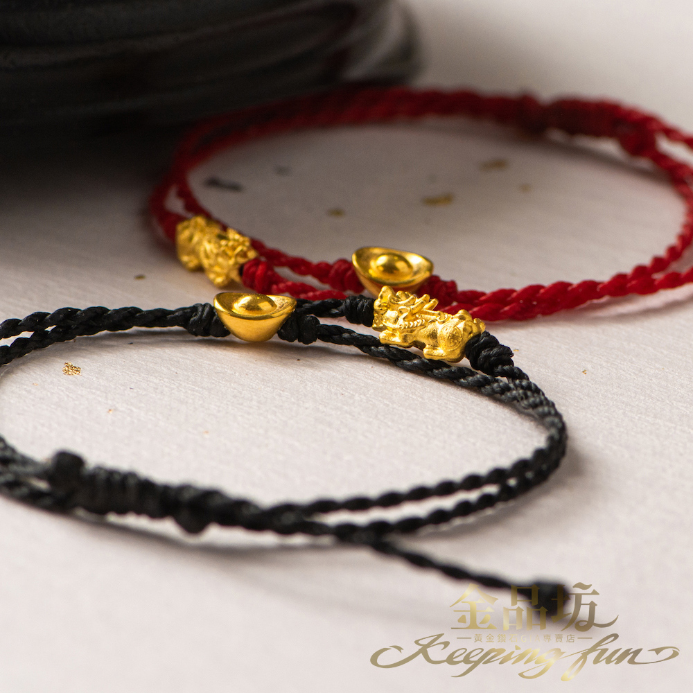 【金品坊】黃金手鍊元寶貔貅雙線綁繩手鍊 0.05錢±0.01(純金999.9、綁繩手鍊、黃金手繩)