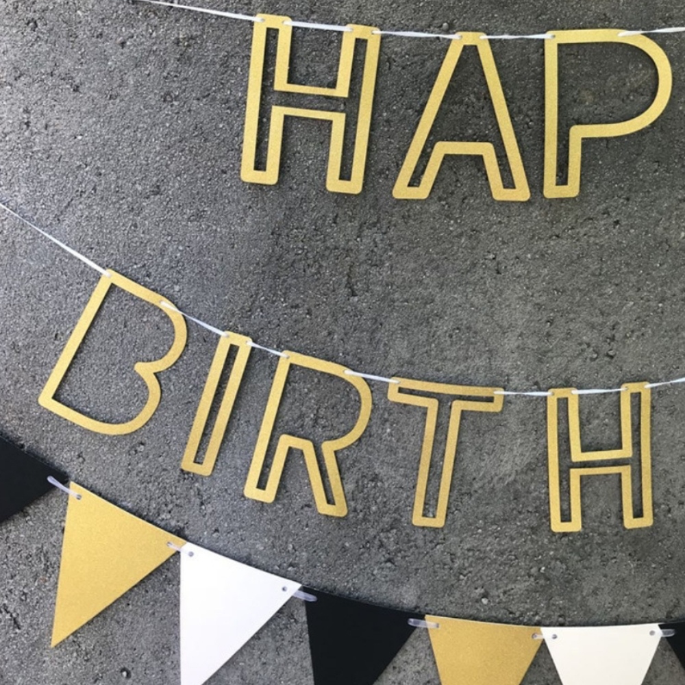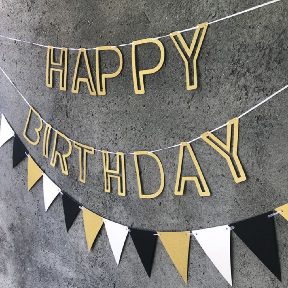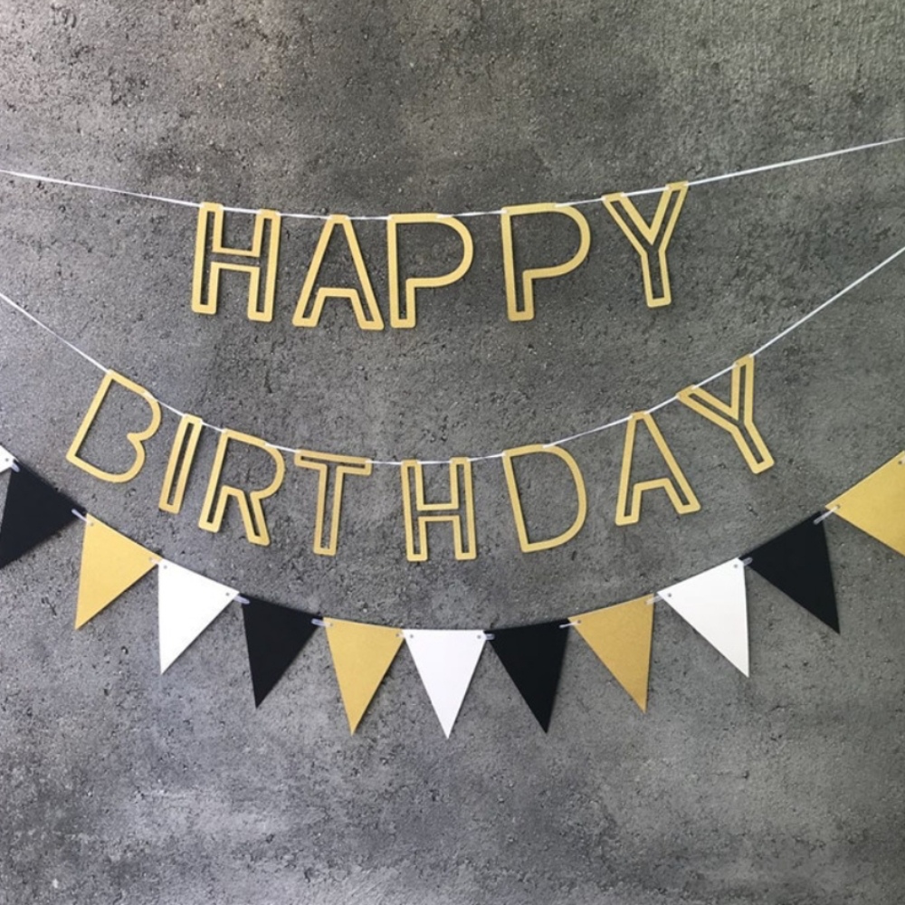 【橘魔法】簍空磨砂金蔥生日快樂+三角旗拉條組(布置用品 週歲 生日快樂 場景布置 場地布置)