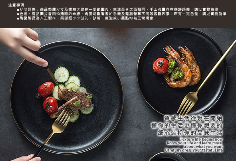 【Homely Zakka】北歐輕奢風金邊黑色磨砂陶瓷餐具/牛排盤/西餐盤_大圓平盤25cm(飯碗 餐具 餐碗 盤子 器皿)