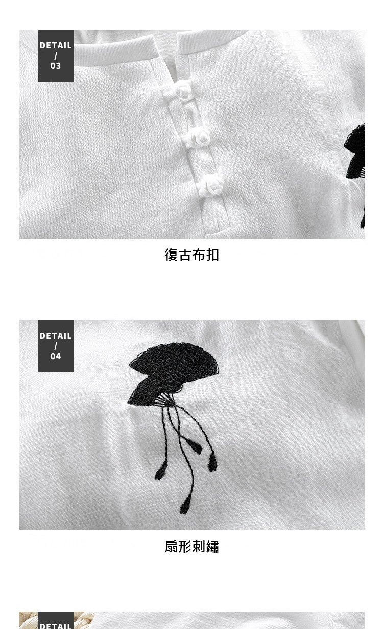 【米蘭精品】現貨+預購 亞麻T恤棉麻短袖上衣(棉麻中國風扇子刺繡男裝父親節禮物2色73xf23)