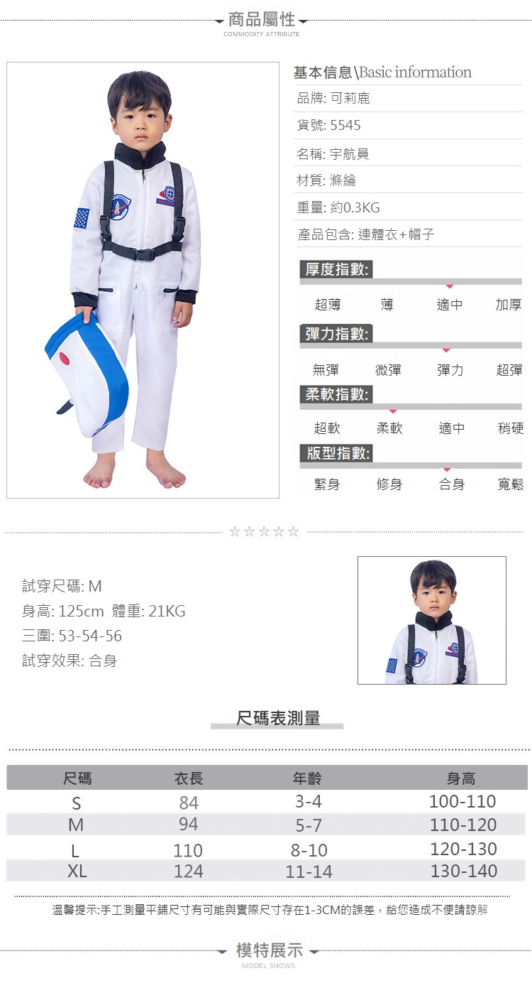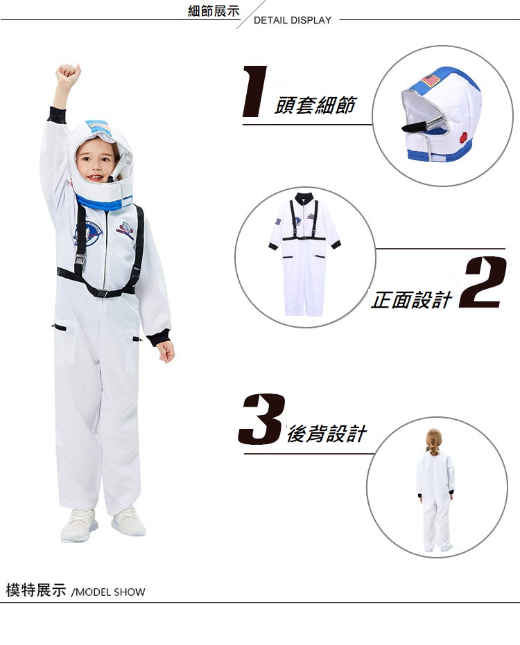 【Kori Deer 可莉鹿】太空人萬聖節兒童裝連身衣+頭套2件組(變裝派對角色扮演造型攝影)