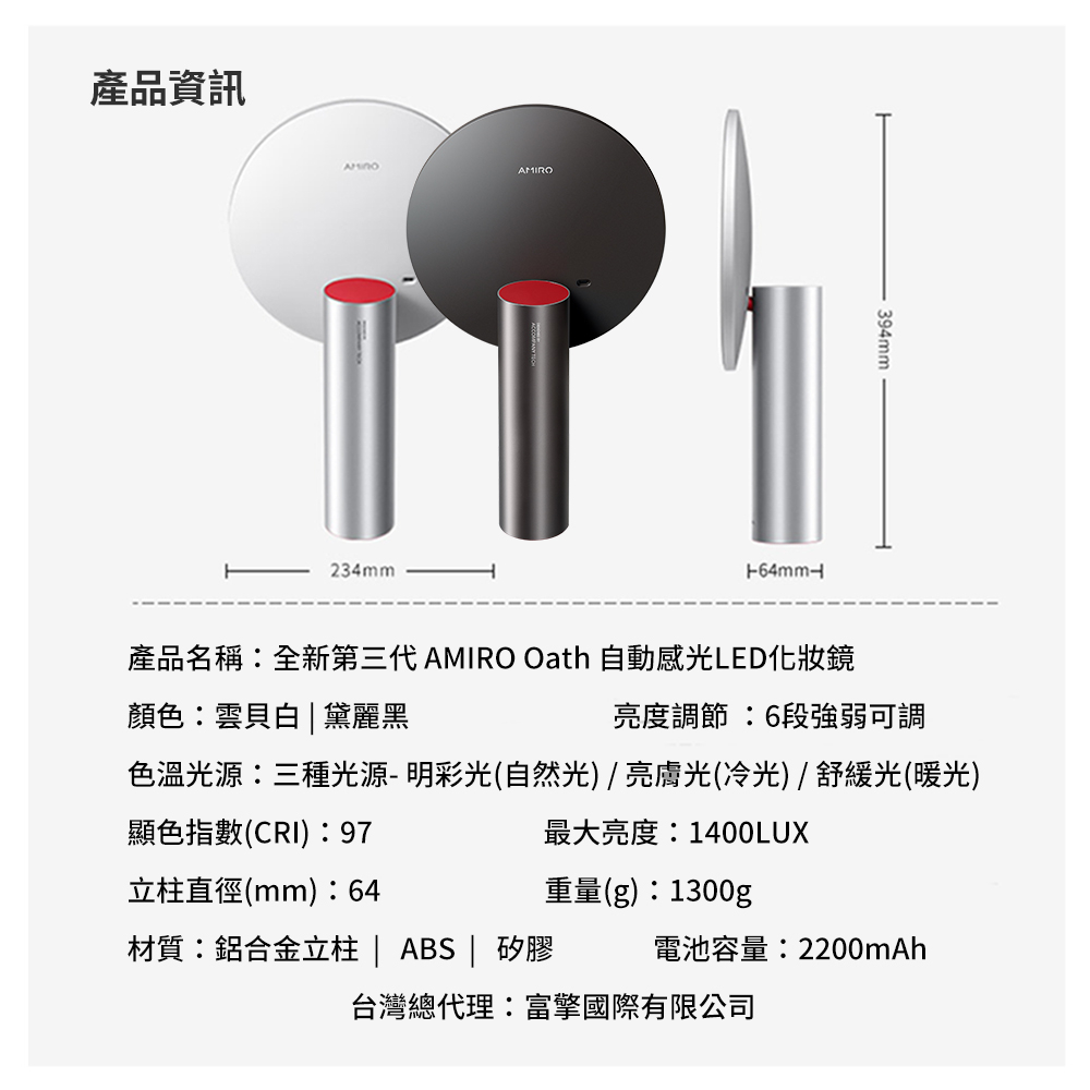 【AMIRO】全新第三代 AMIRO Oath 自動感光 LED化妝鏡(美妝鏡 彩妝鏡 情人節禮物 禮盒 送禮)