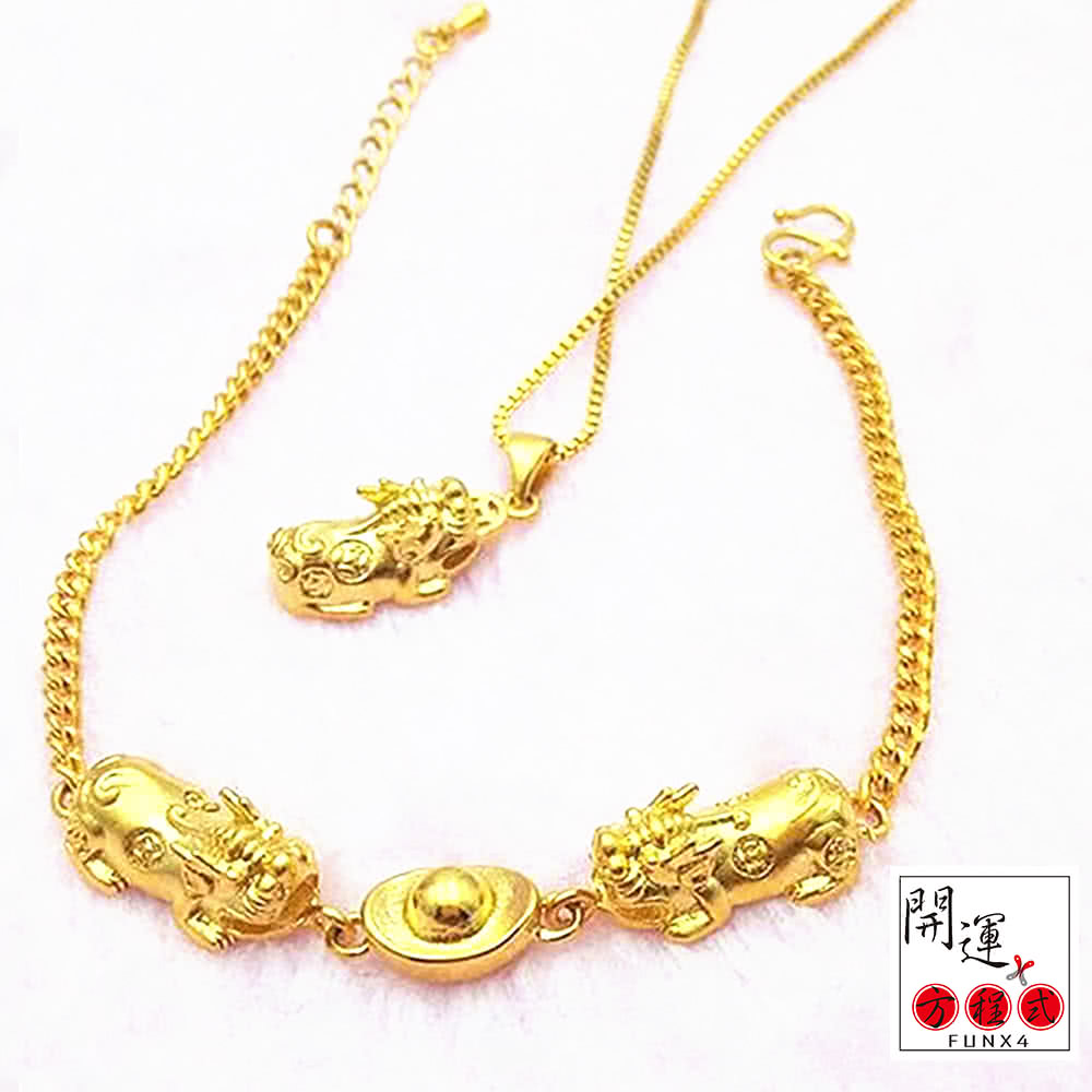 【開運方程式】3D硬金黃金貔貅手鍊加贈黃金項鍊(雙倍招財 開運手鍊)