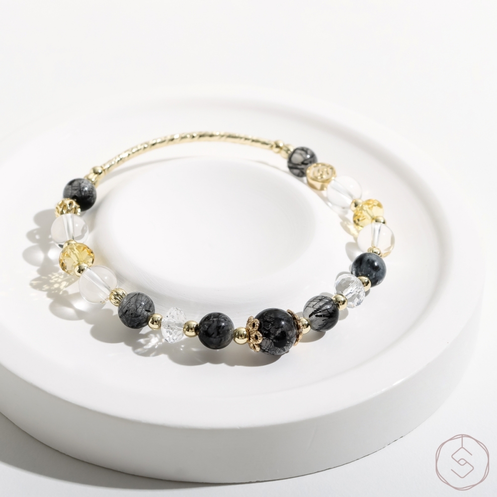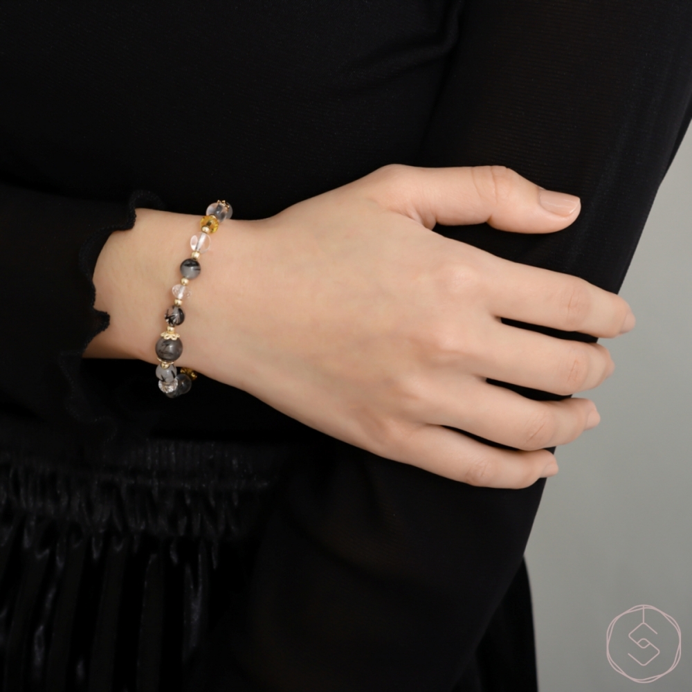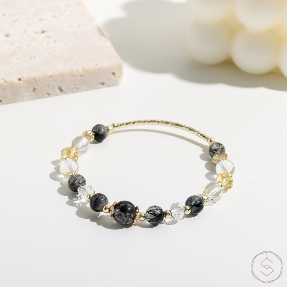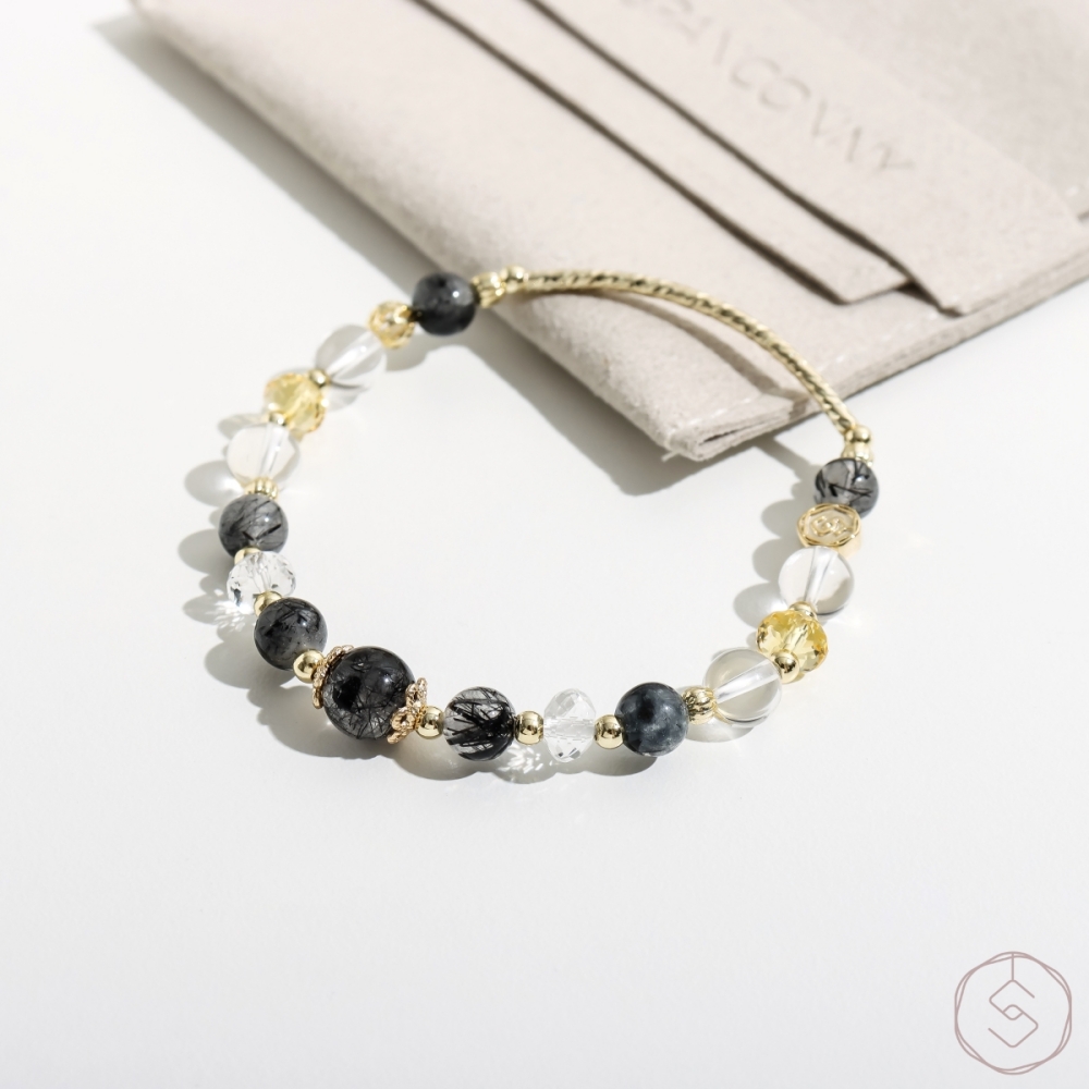 【SPANCONNY 飾品控】晚宴會 l 黑髮晶 黃水晶 白水晶 l 天然水晶手鍊(防小人+招財)