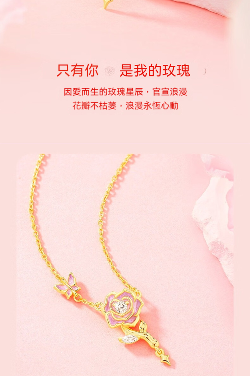 ✨ 商品尺吋:全長23CM、玫瑰吊墜2*1CM