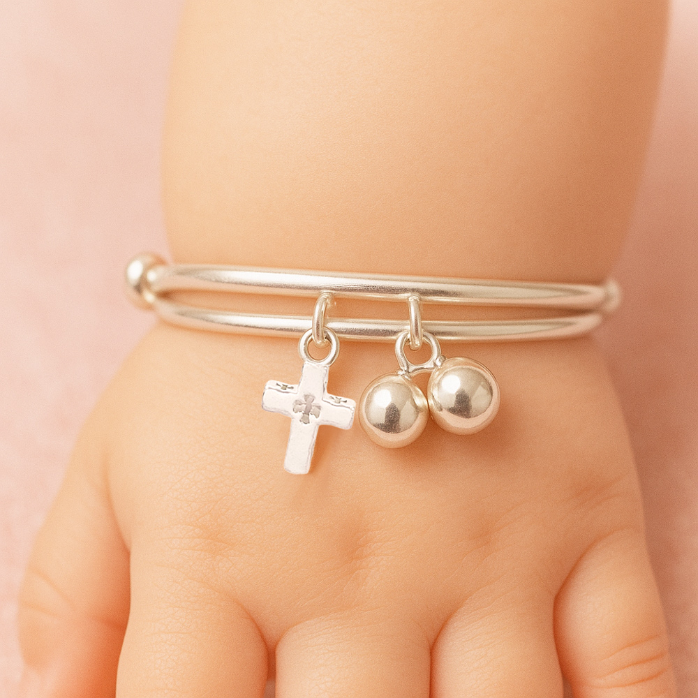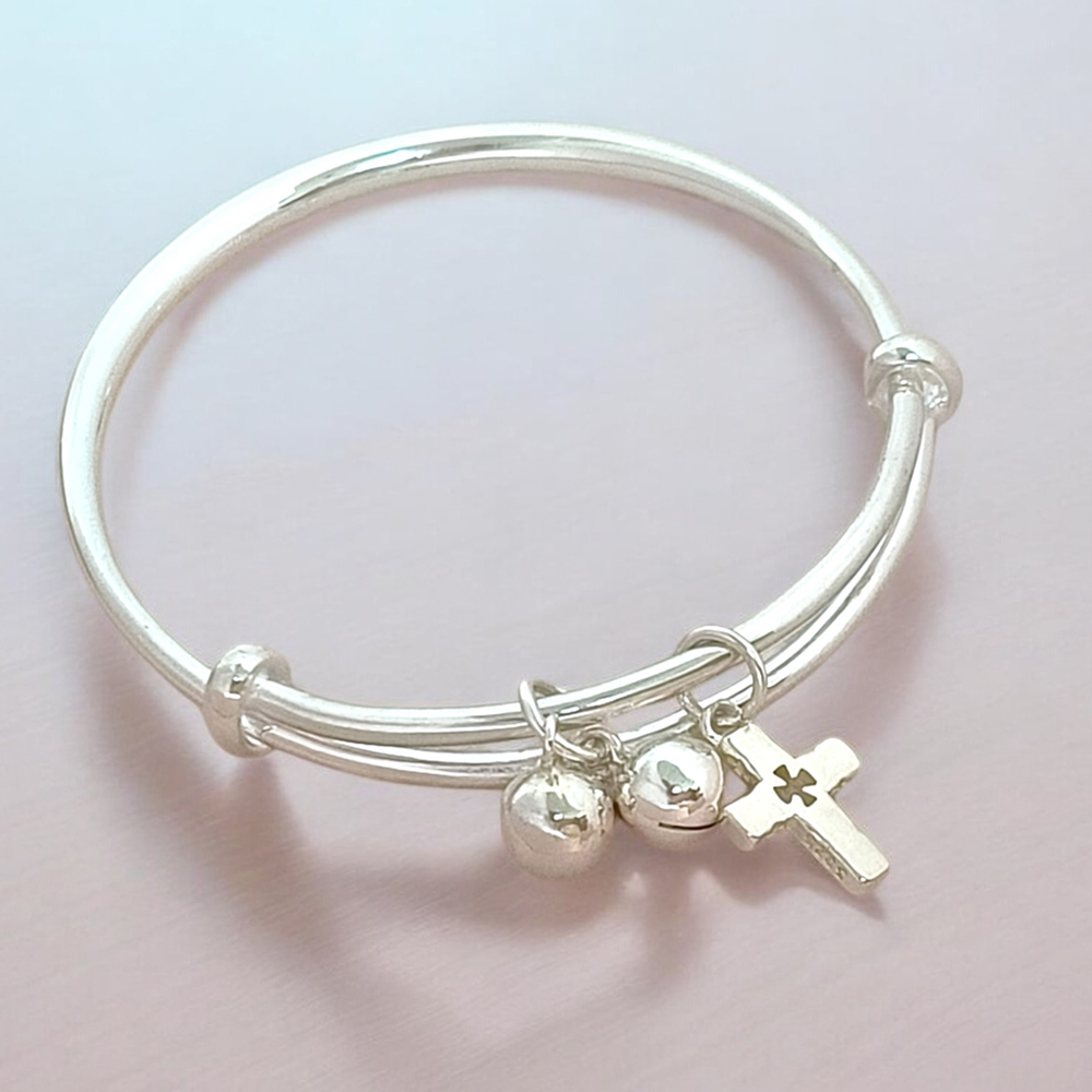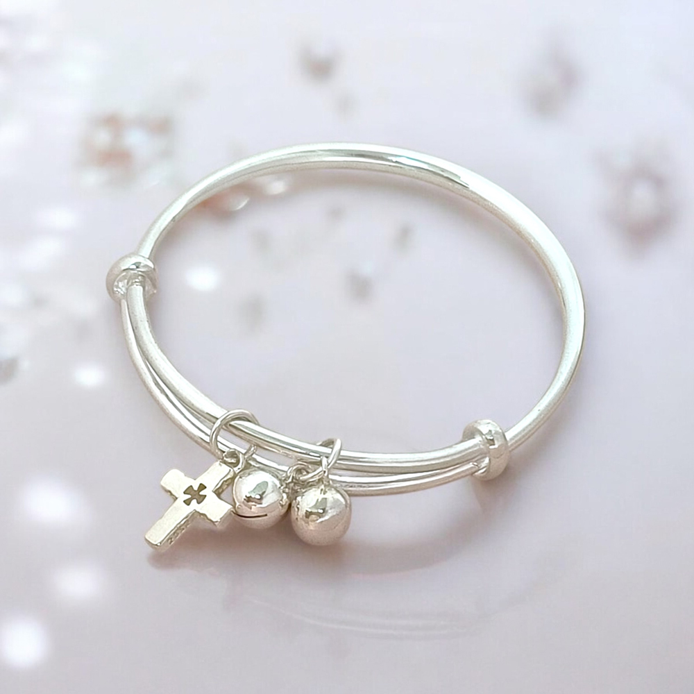 【珠兒綠】999純銀幸福十字架搖鈴手鐲 嬰兒|兒童|成人尺寸 純銀手鐲 彌月禮物 周歲禮物 新年禮物