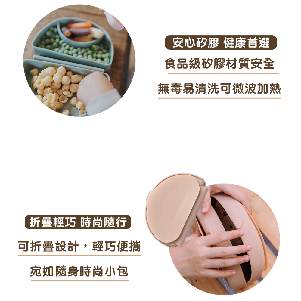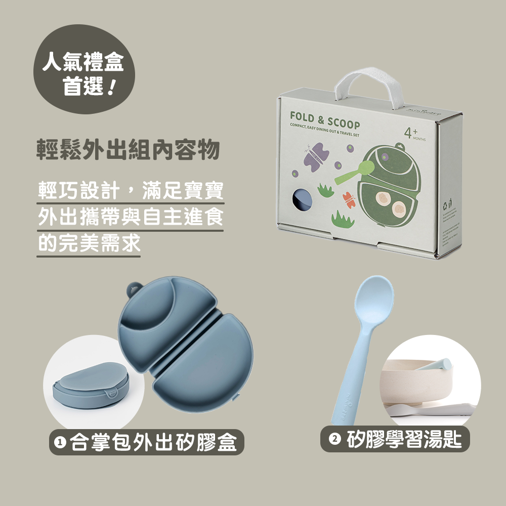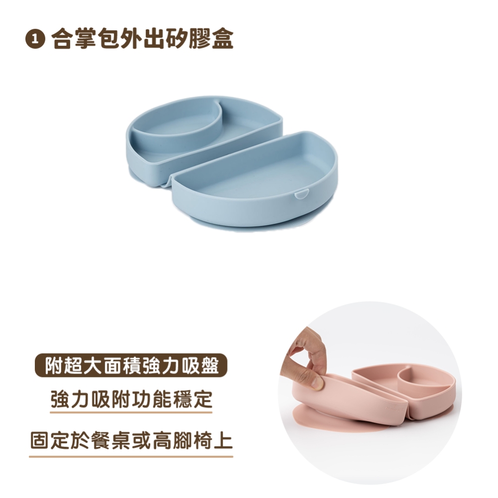 內容物:矽膠學習湯匙 x1、合掌包外出矽膠盒 x1