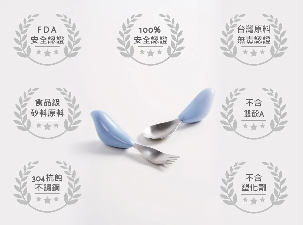 PICABOO透過鳥背的曲線貼合小掌心,讓孩子整隻手掌穩穩地包覆握把來控制餐具,同時短握柄設計可以縮短食物從碗裡到嘴裡的距離,飯菜更不易掉落,讓孩童累積成功經驗增加自信心✨
