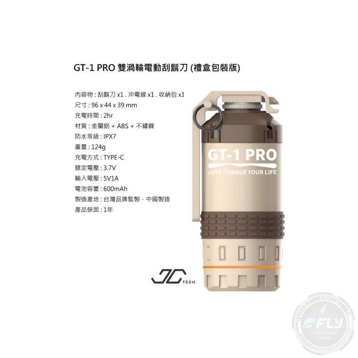 【JC TECH.】【JC TECH.】GT-1 PRO 雙渦輪電動刮鬍刀(禮盒包裝版)◉公司貨◉附收納包◉出遊攜帶◉全機防水◉USB-C