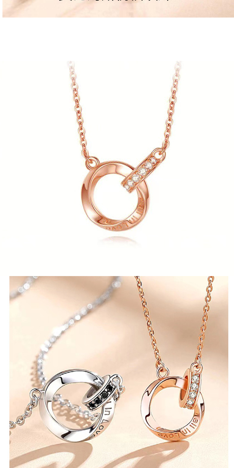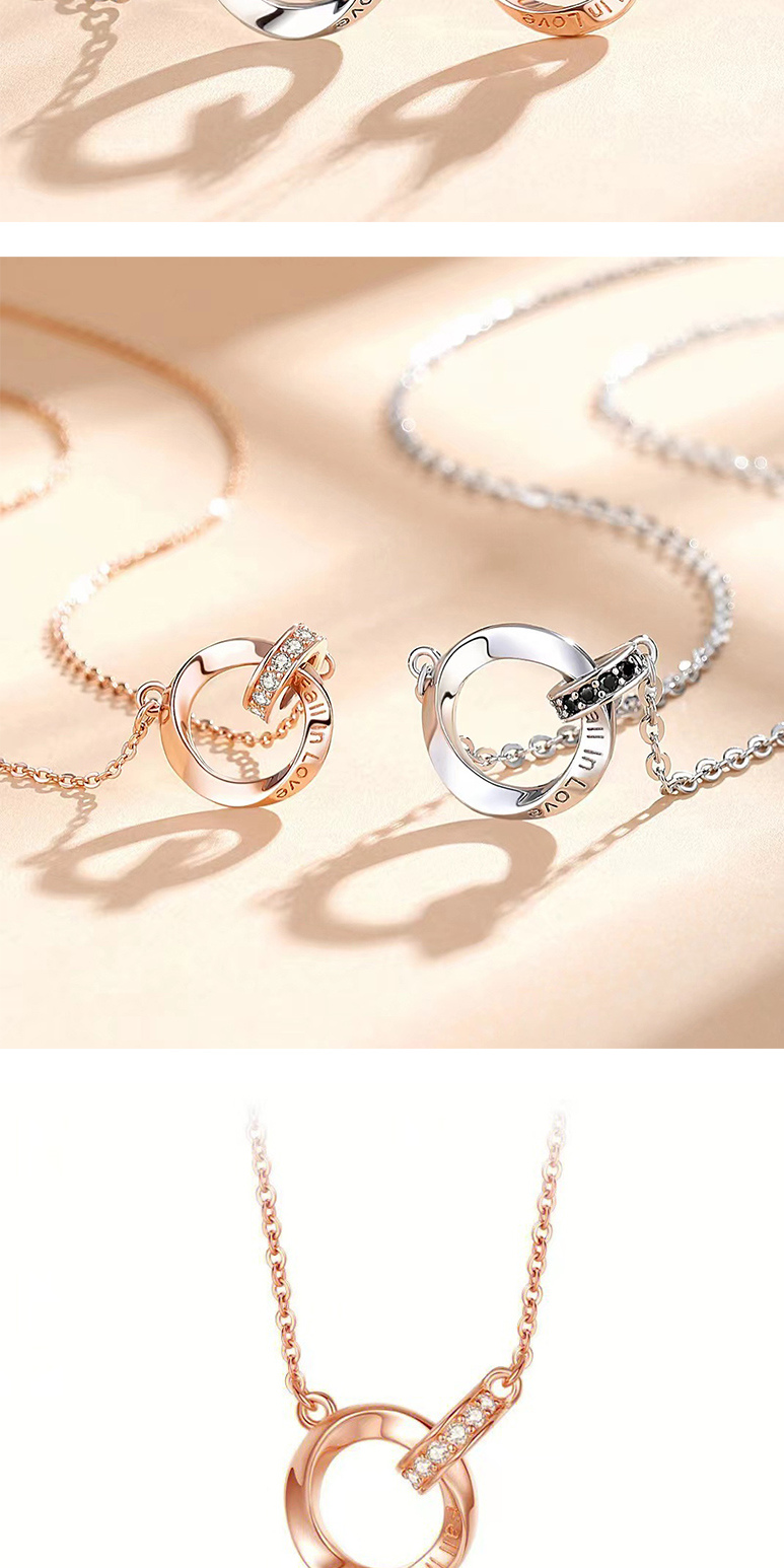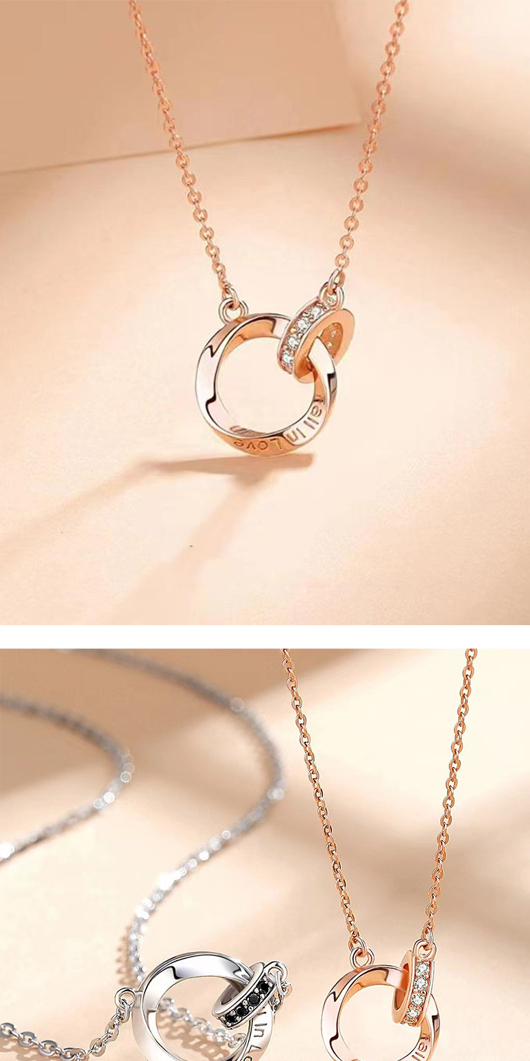 【MoonDy】純銀項鍊 雙環項鍊 項鍊 頸鍊 鎖骨鍊 戒指項鍊 項鍊女 韓國項鍊 氣質項鍊 生日禮物 女生禮物