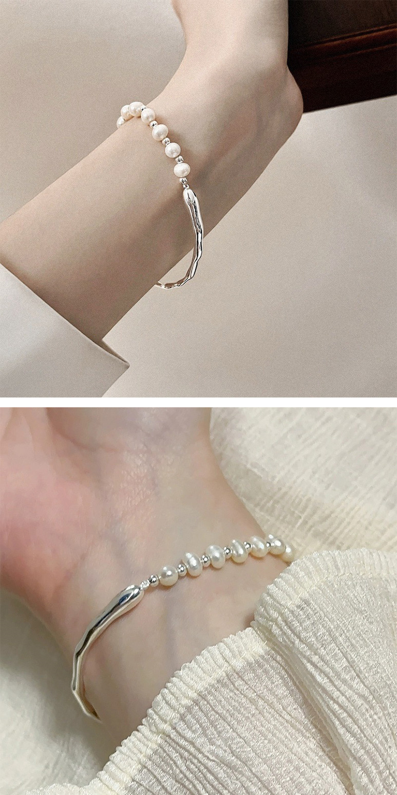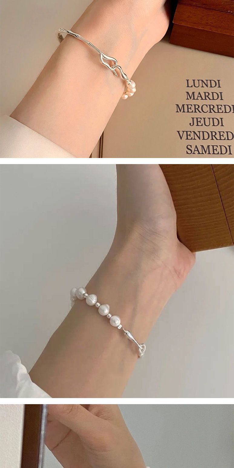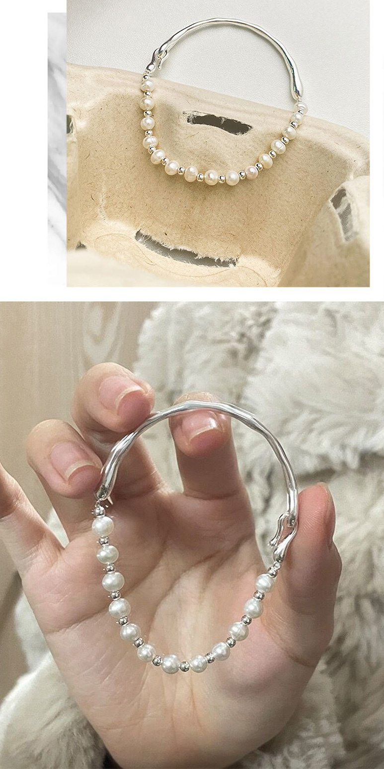 【KT DADA】氣質手環 女生禮物 情人節禮物 純銀手鍊 手鐲 純銀手環 珍珠手鍊 半鐲半鍊 閨蜜手鍊 法式手鍊