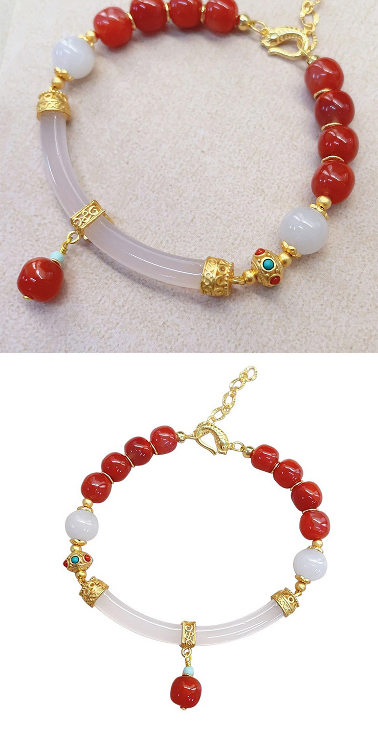 【MoonDy】手鐲 手環 手鏈女 純銀手環 瑪瑙手鐲 玉髓手鐲 紅瑪瑙手鐲 避邪手鍊 串珠手環 新中式手鍊