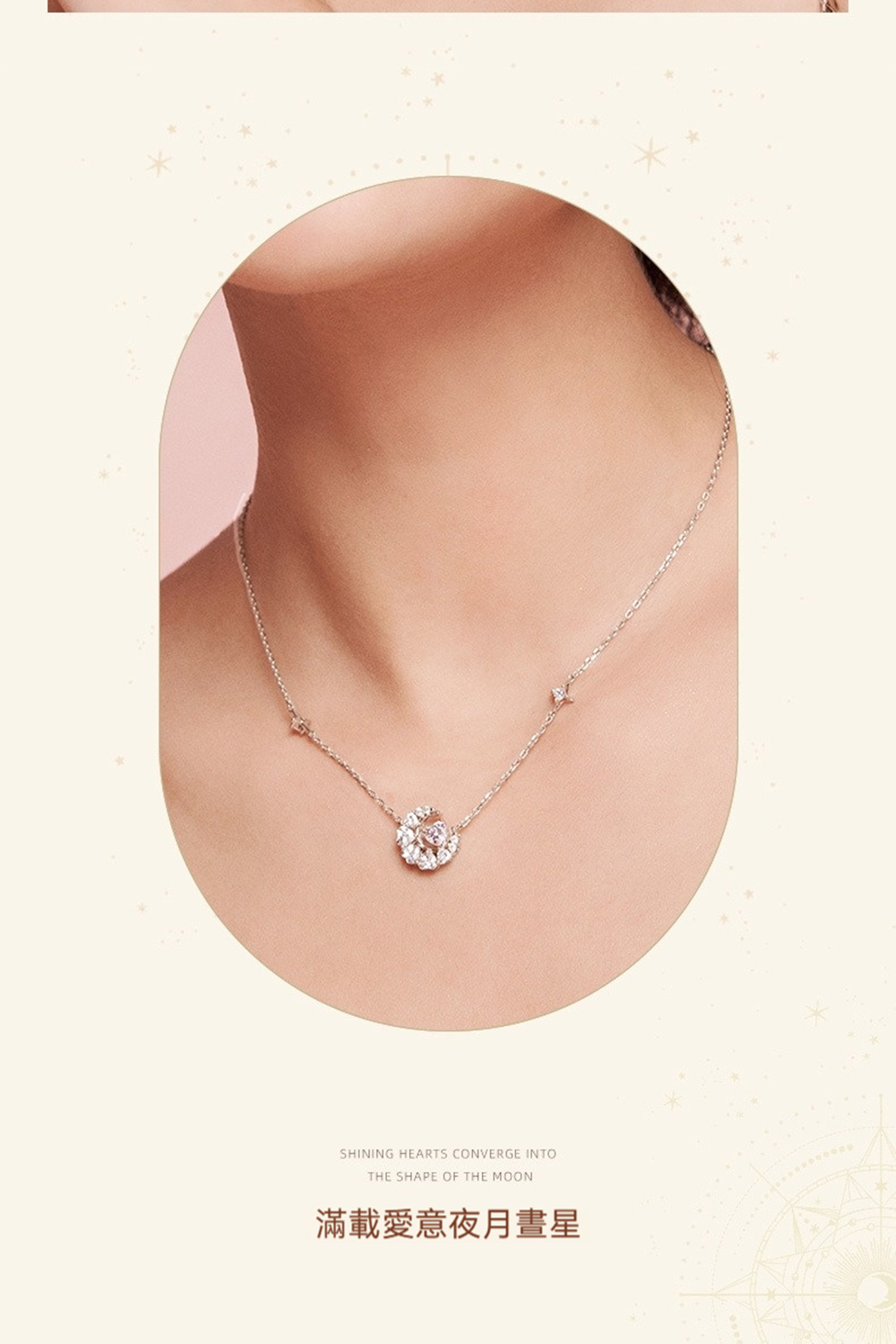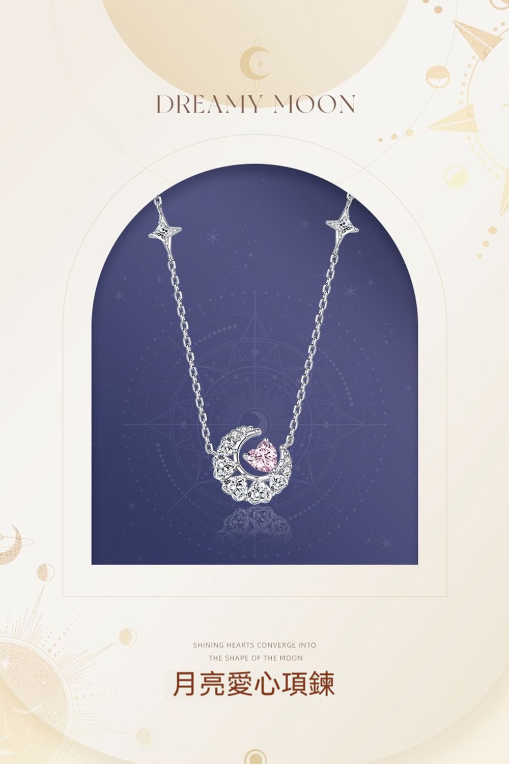 【MoonDy】純銀項鍊 鋯石項鍊 S925 鎖骨鍊 項鍊 月亮愛心吊墜 情人節禮物