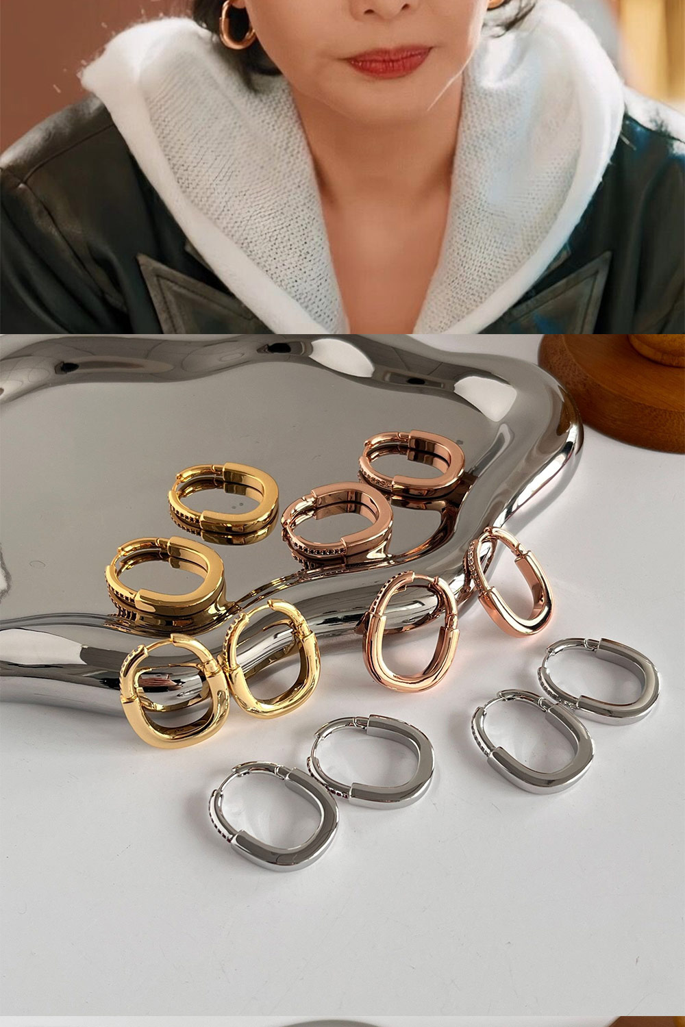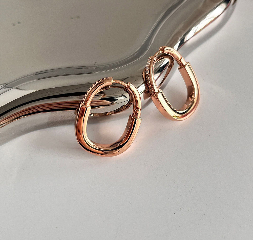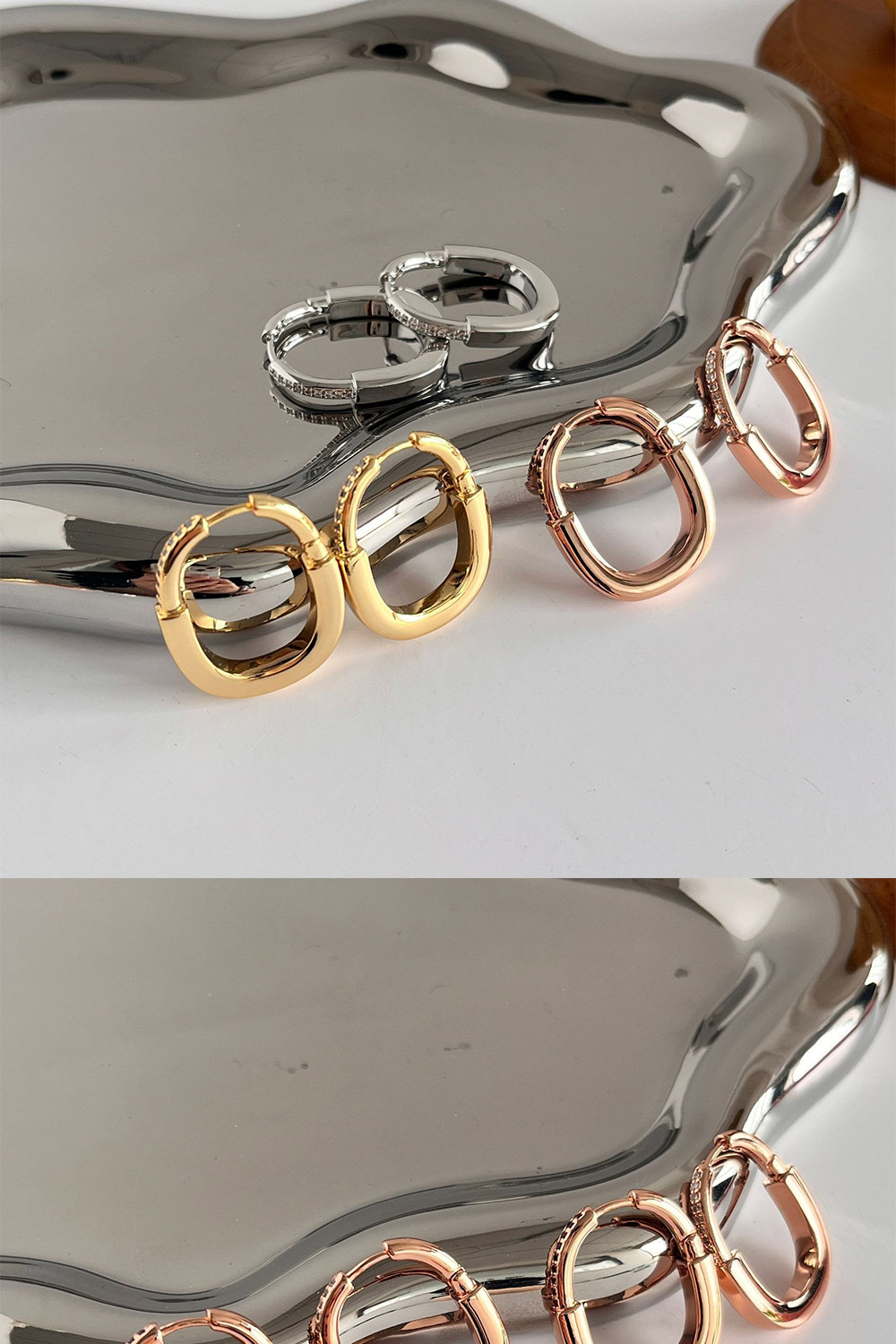 【MoonDy】環狀耳環 鋯石耳環 鎖頭耳扣 素色耳圈 橢圓耳飾 女生飾品 配飾 金屬耳環