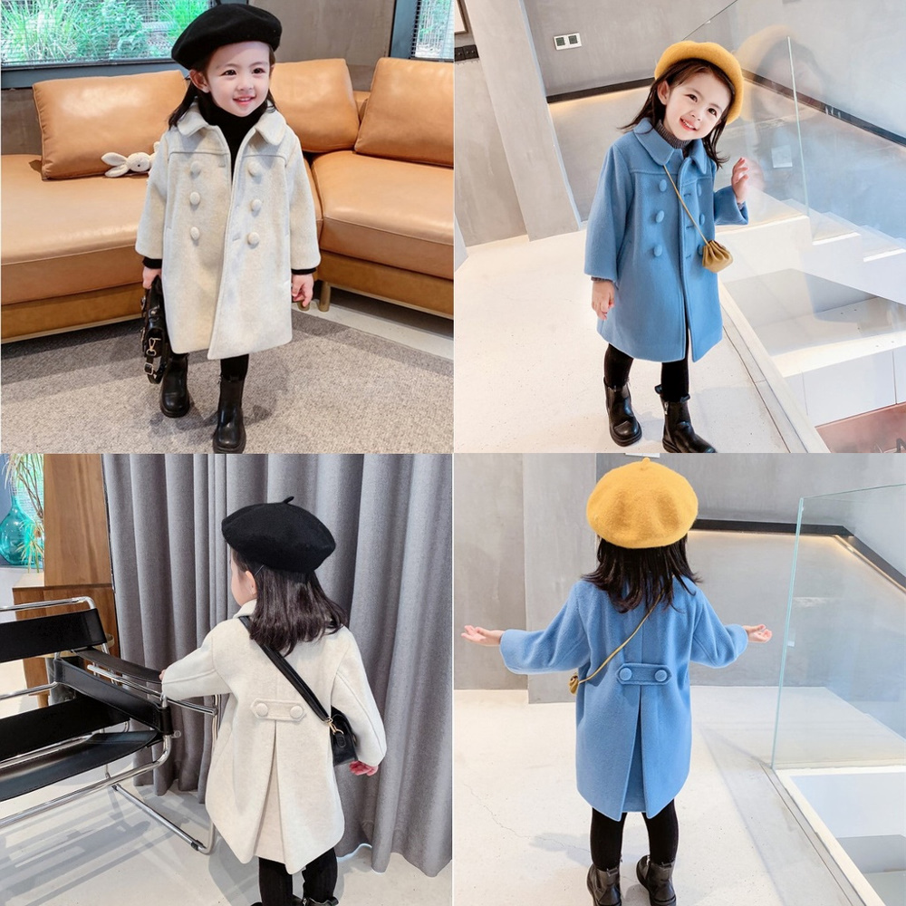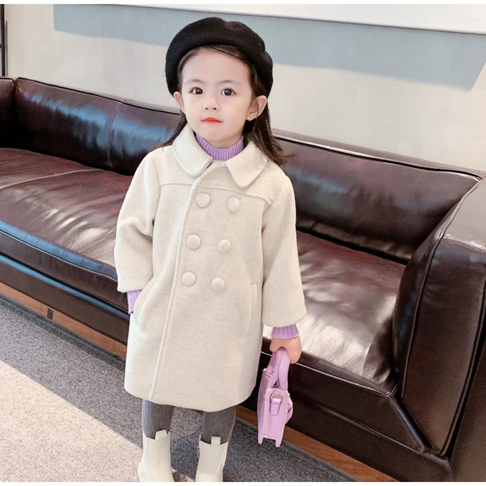 【Arbea】兒童中長款大衣女童韓版加厚雙排扣外套C466(秋冬款)
