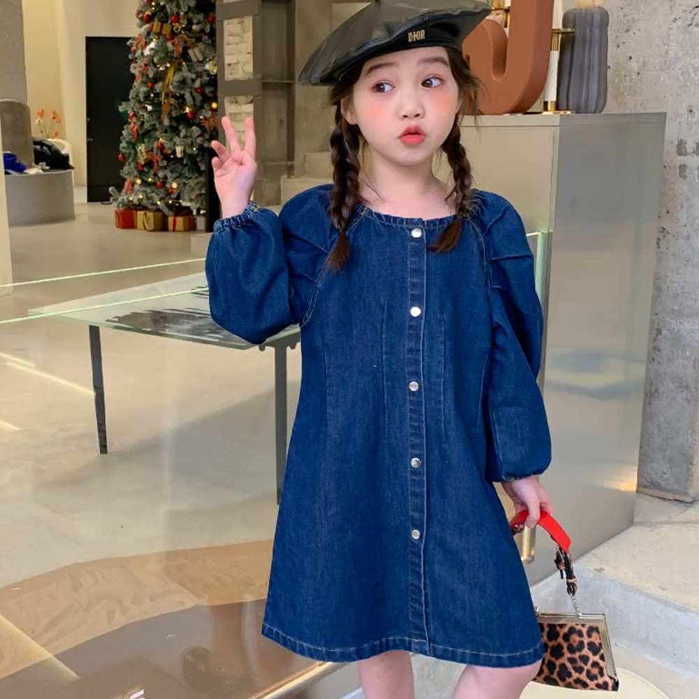 【Arbea】女童牛仔連衣裙春裝新款兒童韓版方領長袖春秋童裙童裝 C114