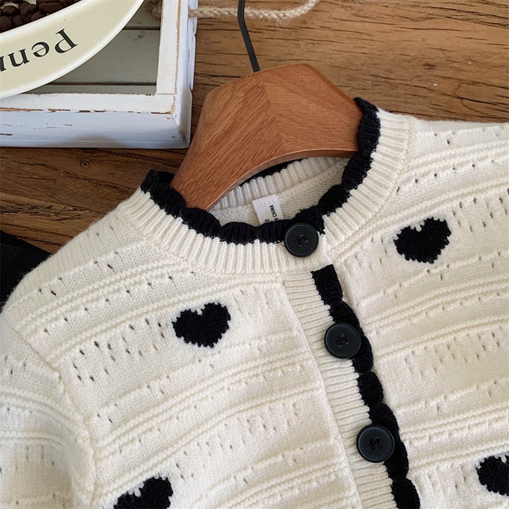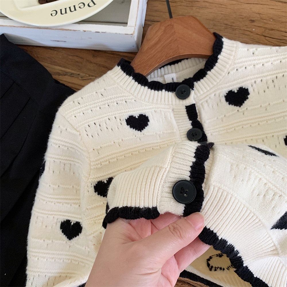 【Arbea】女童愛心毛衣開襟春秋中小兒童韓版針織衫寶寶洋氣外套 C709