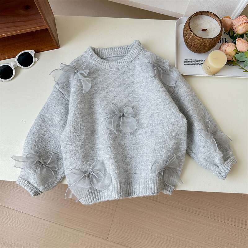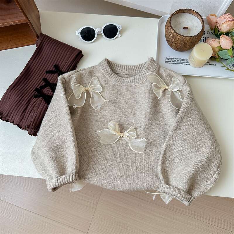 【Arbea】韓國童裝毛衣春季秋季新款洋氣女童韓版時尚兒童蝴蝶結針織衫【C1297】