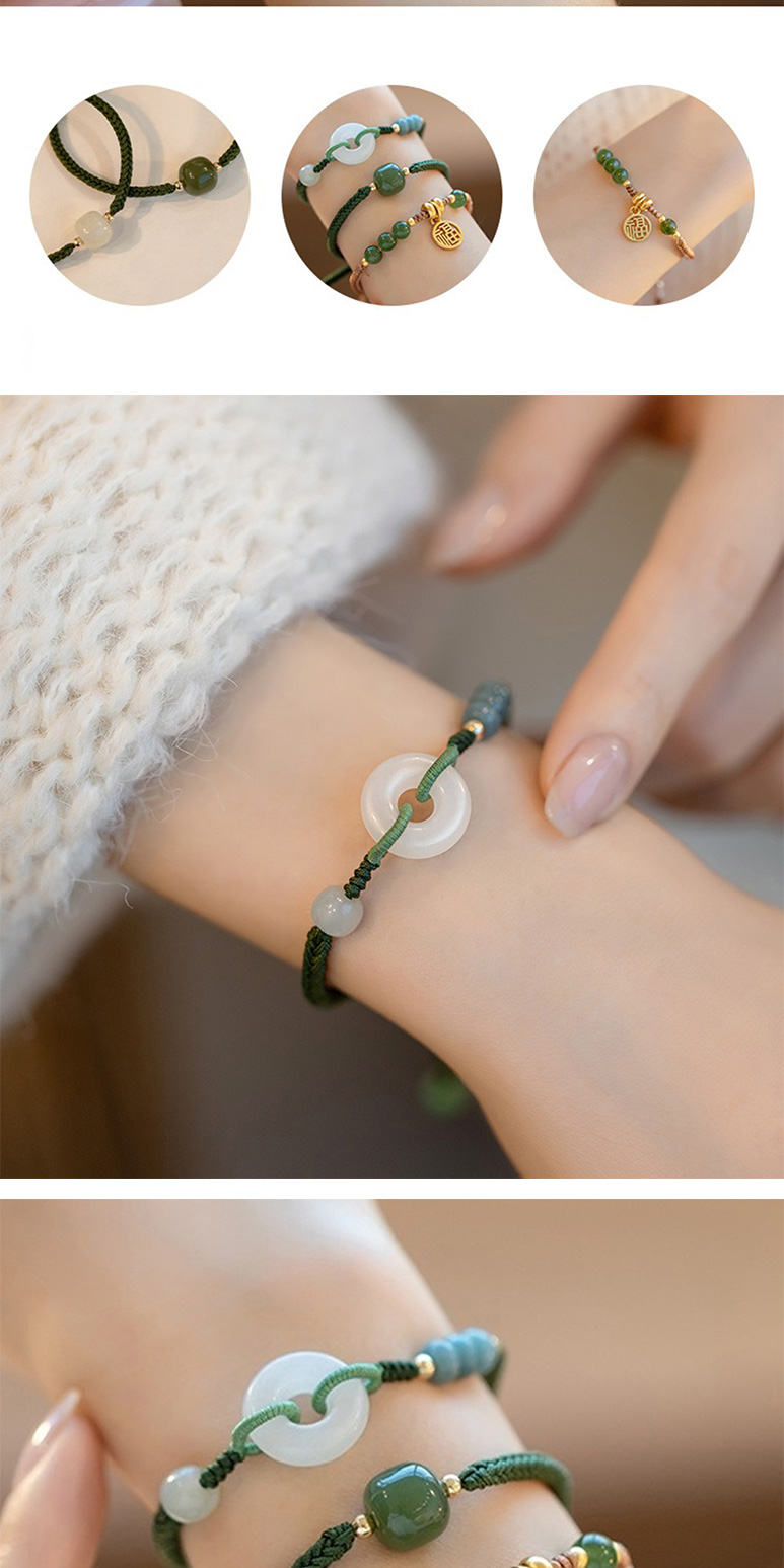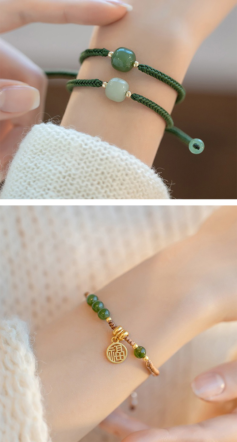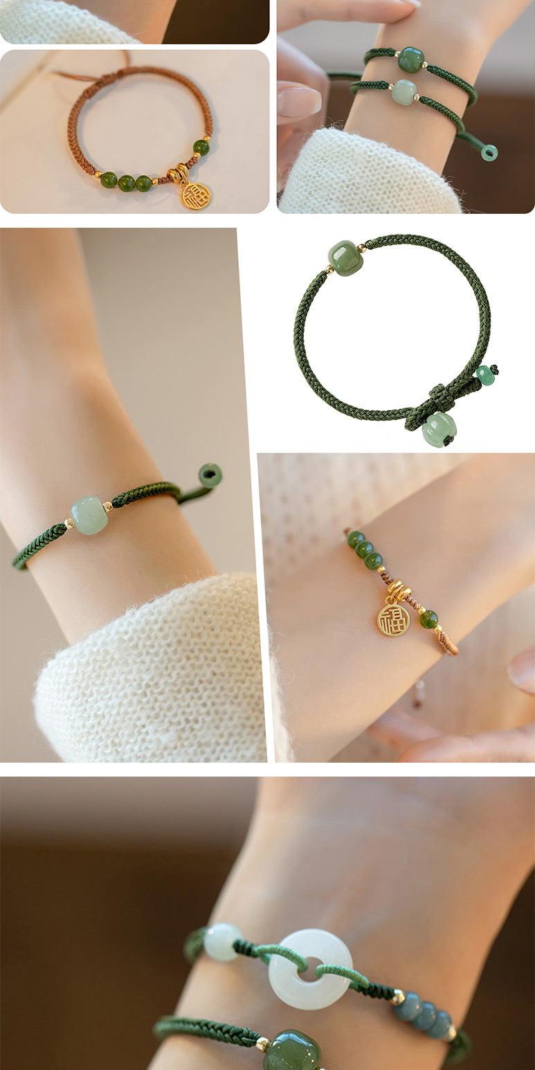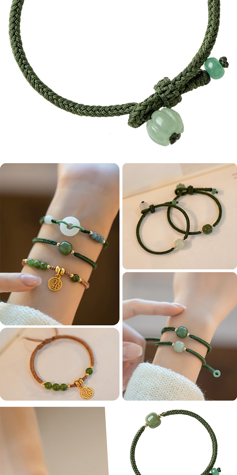【LEEHER】手鍊/手串/編織手鍊/兒童手鍊/編織手環/和田玉手鏈/福字吊墜/平安手鍊/綠色手鍊/伸縮手鍊