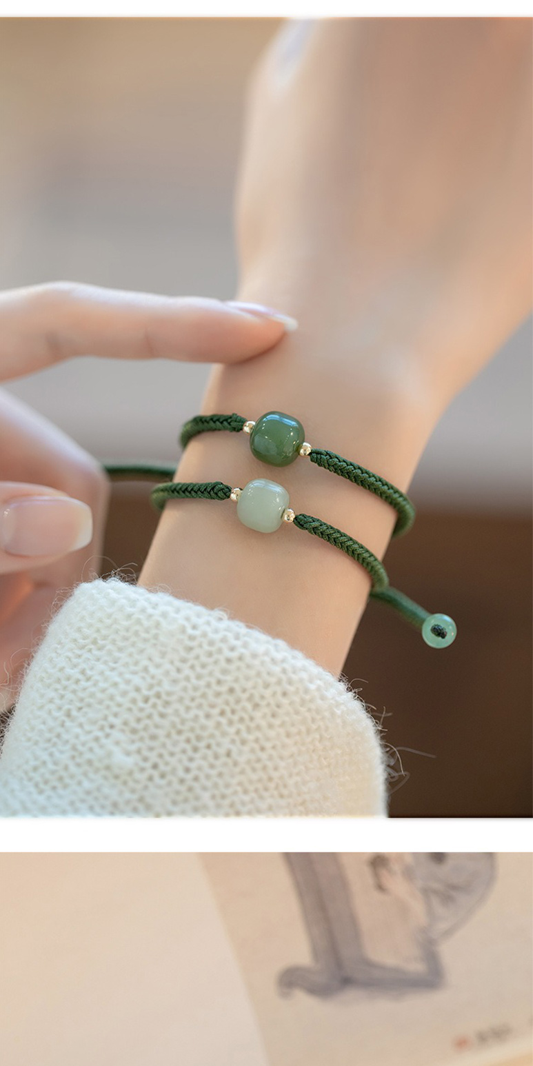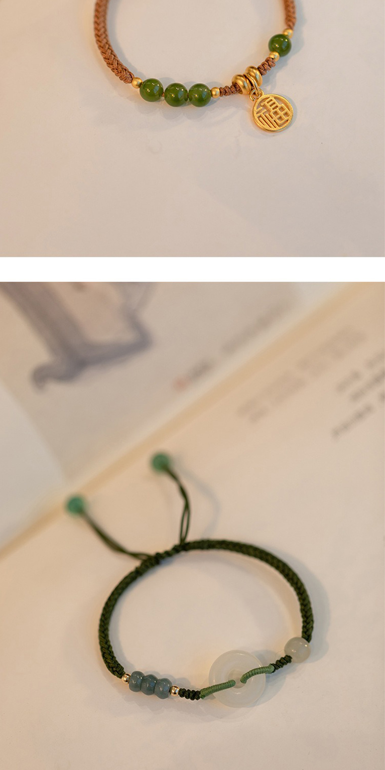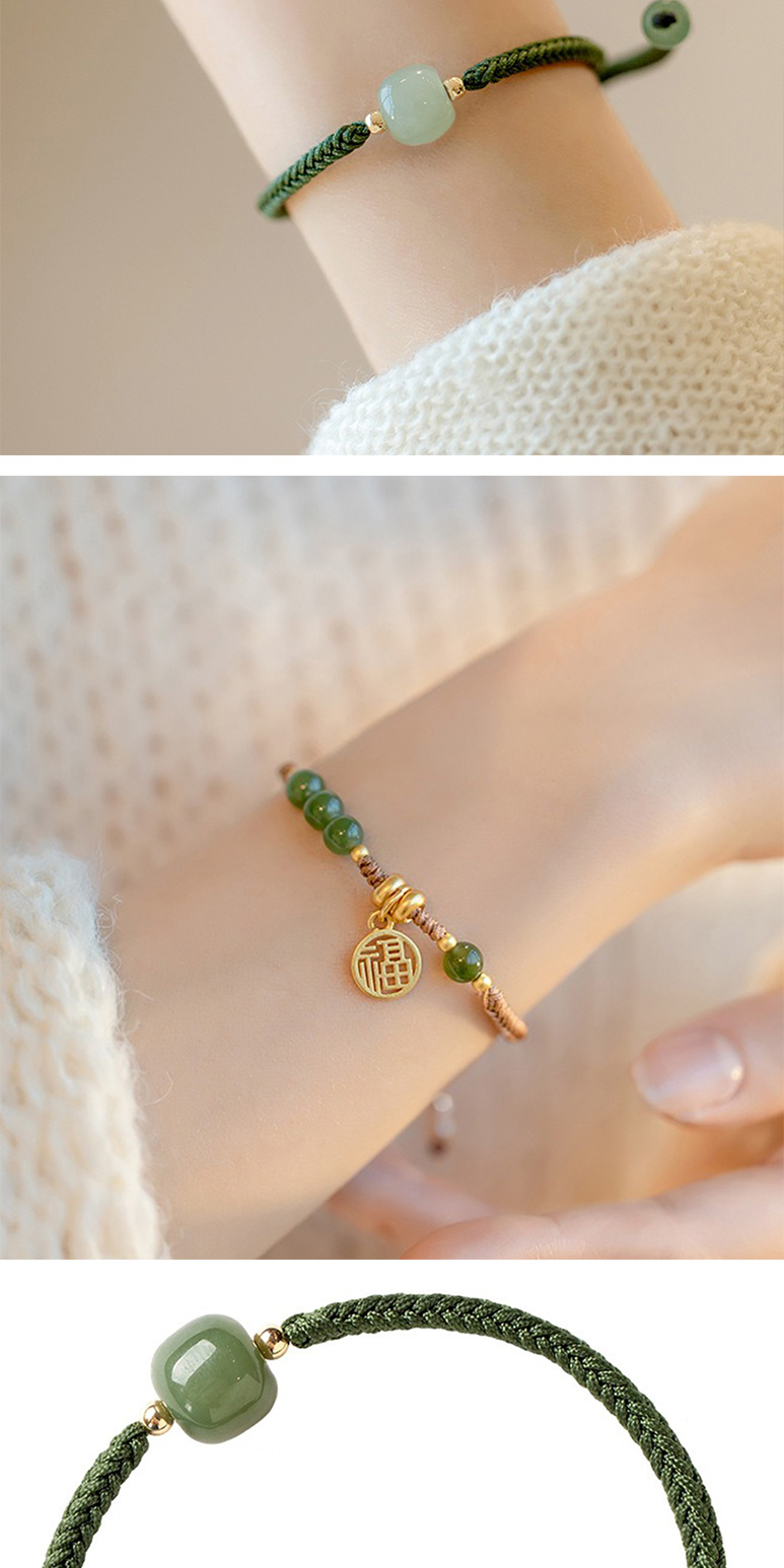 【LEEHER】手鍊/手串/編織手鍊/兒童手鍊/編織手環/和田玉手鏈/福字吊墜/平安手鍊/綠色手鍊/伸縮手鍊
