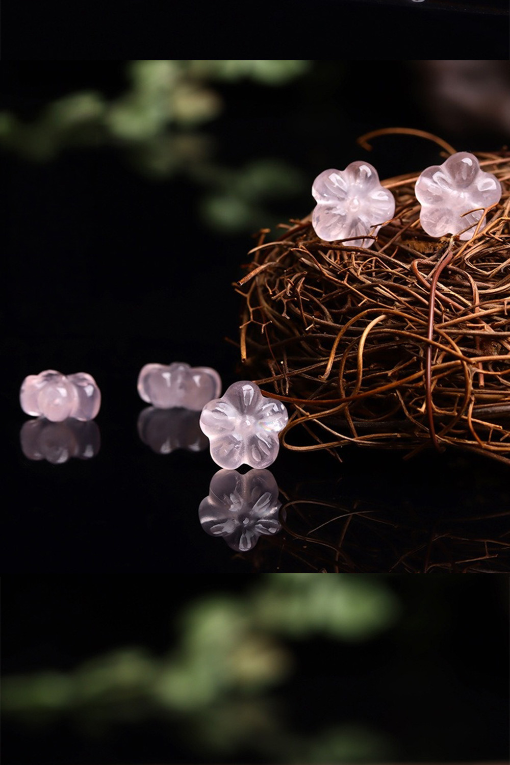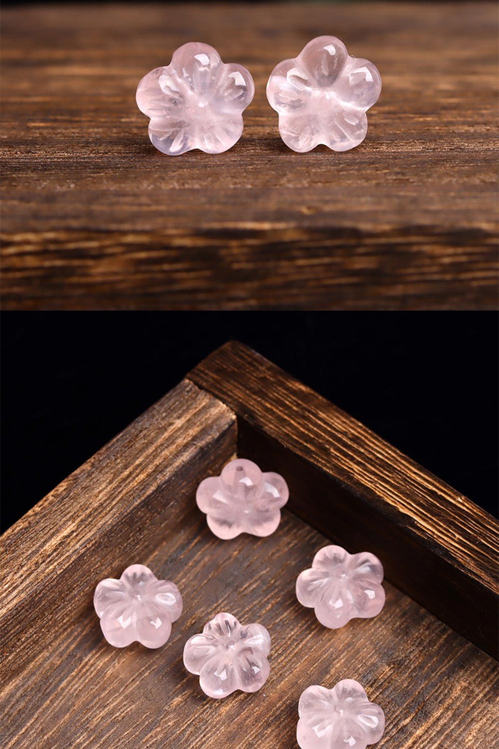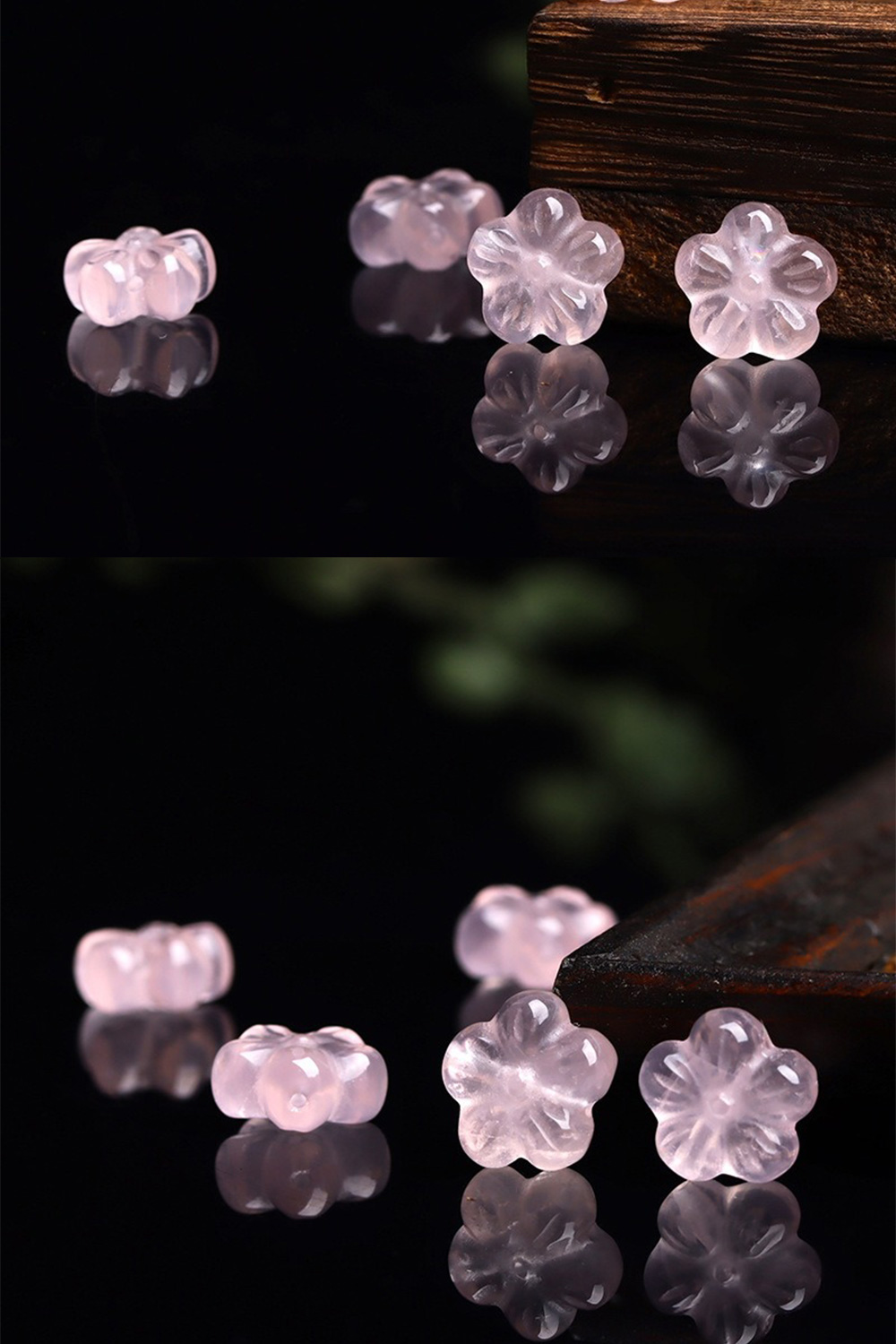 【LEEHER】DIY飾品/天然水晶/粉晶五瓣花配件/項鍊/耳飾/手飾配件/手工串珠/配飾/