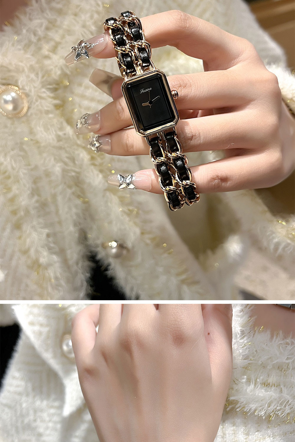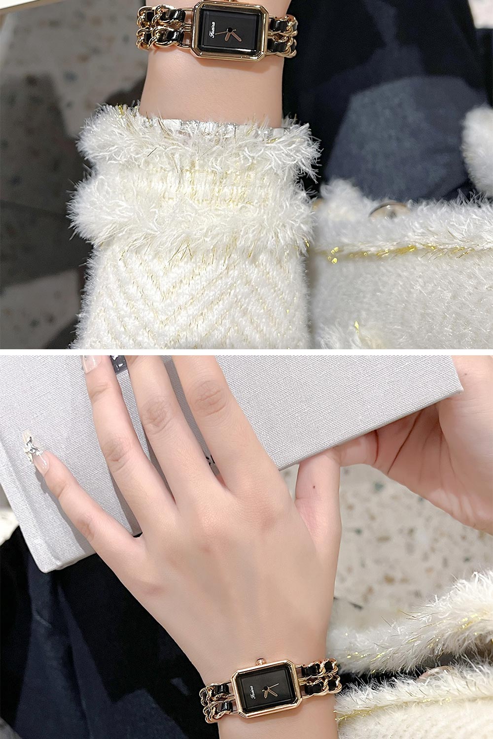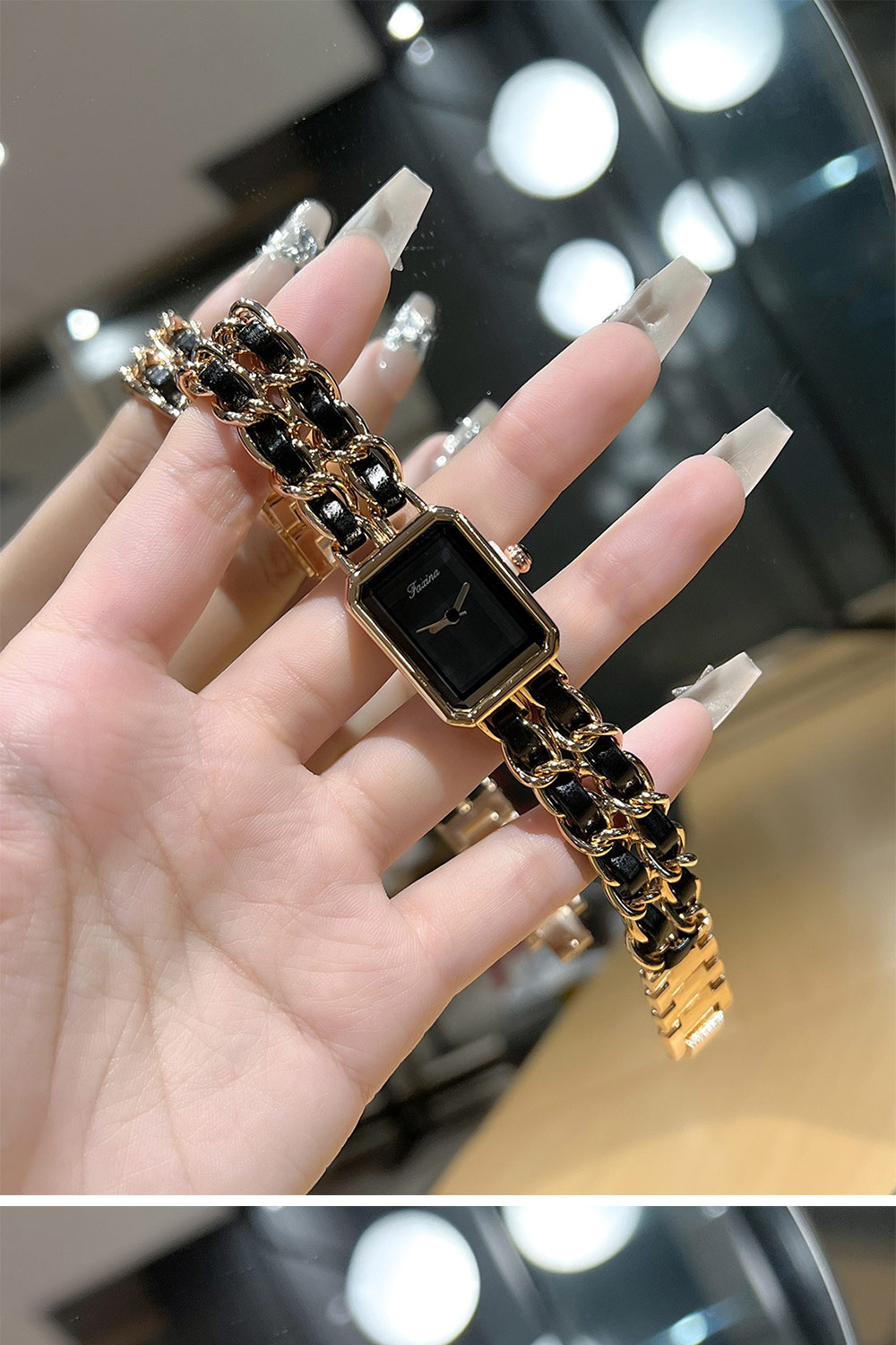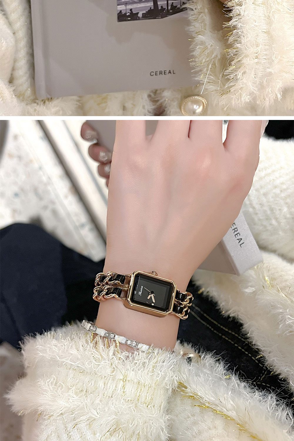 ✨ 商品尺吋:錶盤約長1.8公分、高2.1公分、寬度0.9公分、錶帶寬0.6公分*2條、長約17公分
