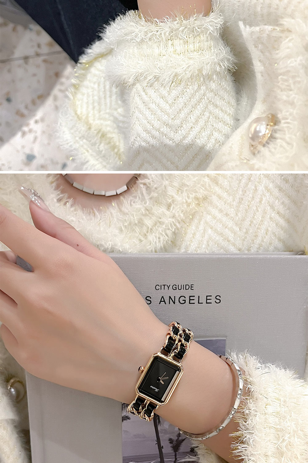 ✨ 材質:不鏽鋼、金属、真皮錶帶、強化玻璃鏡面